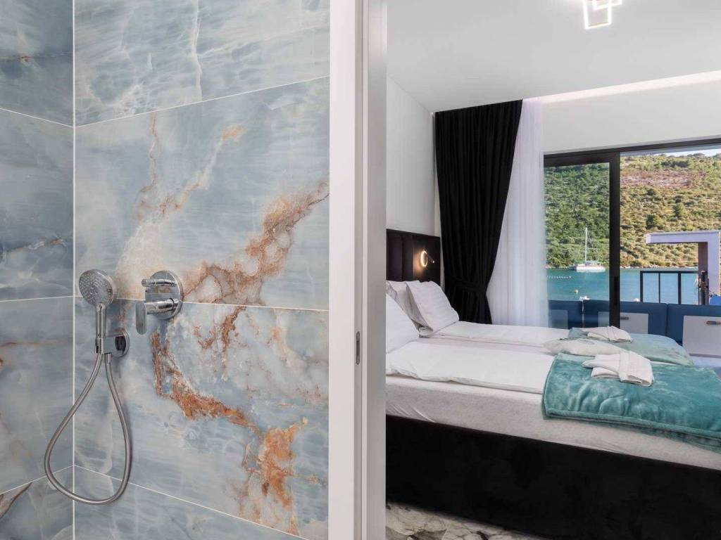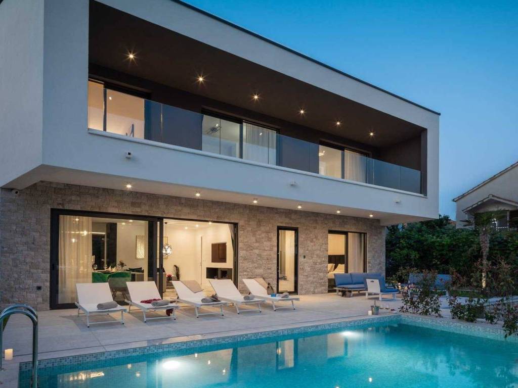 In our offer we offer this beautiful and modern newly built villa with a swimming pool, located in the first row to the sea, near the village of Rogoznica.