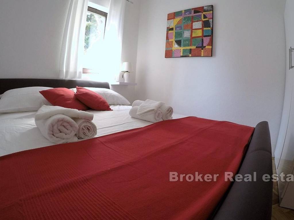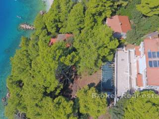 The house is located on a large plot of 1530m2 that stretches all the way to the beach and the sea. The land is fenced, a large part covered with stone, and in its lower part by the sea, a garage for a small boat has been built, and on the beach there is a mooring for a boat.