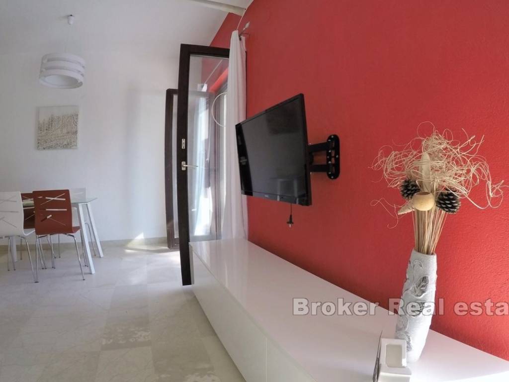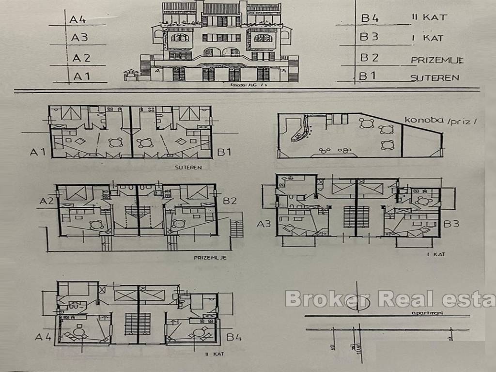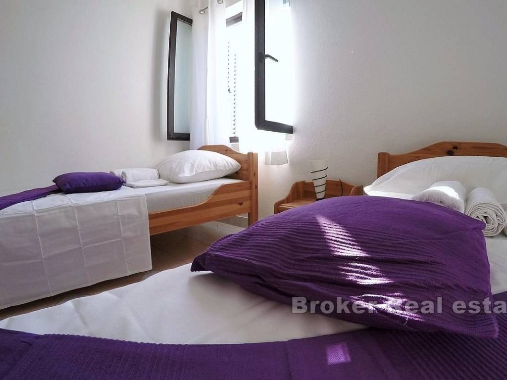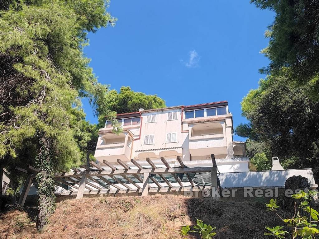The house itself is spread over 4 floors and consists of 8 apartments (six one-bedroom and two two-bedroom), each with a terrace and a view of the sea. The house still has a tavern and a large floor space below it, which is designed as a large open terrace under a pine forest with tables and chairs where top Mediterranean specialties would be served in case the new owner wants to continue using the facility for commercial-tourist purposes.