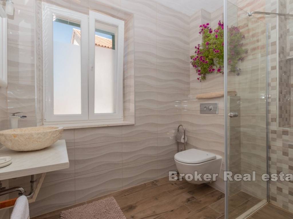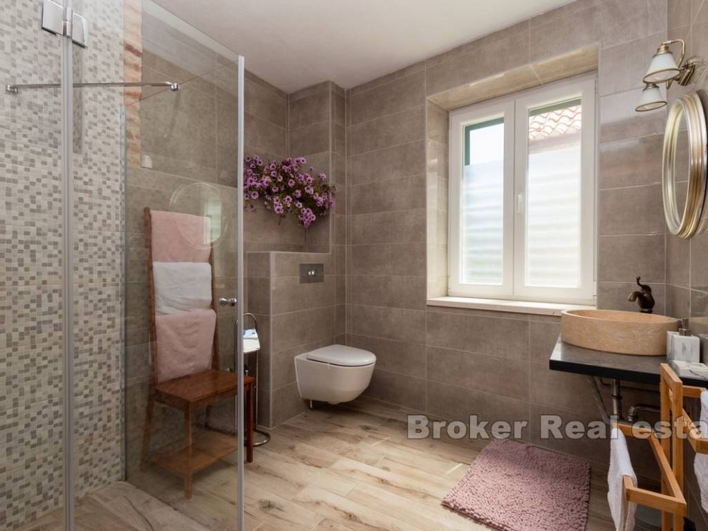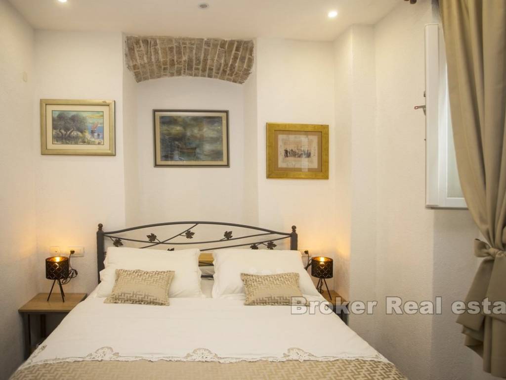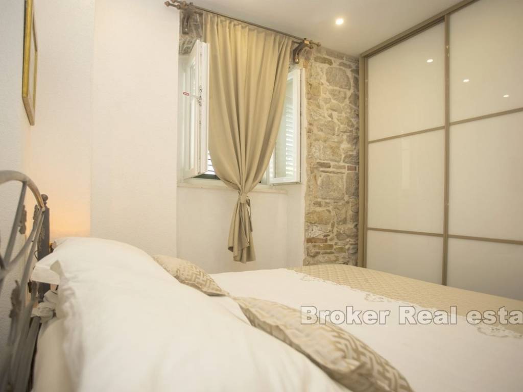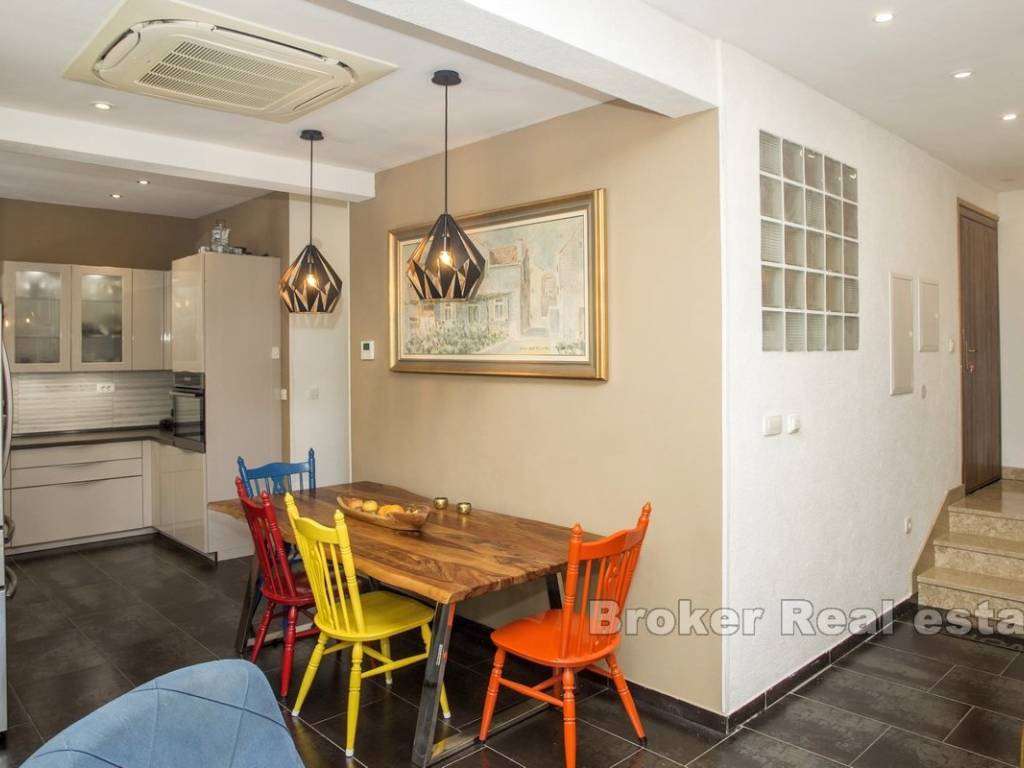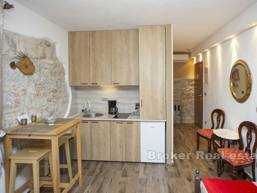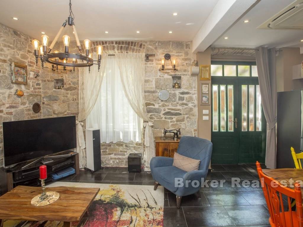 Stone detached house near the city center, just a few minutes away from Diocletians Palace and the waterfront. Its 160 m extends over three floors, consists of five separate units and has a southern orientation. On the ground floor of the house there is a two-room apartment with its own entrance. Above it are four studio apartments with their own kitchens and bathrooms, which are connected by an internal staircase. The two-room apartment on the ground floor consists of an entrance hall, a hallway, two bedrooms, a bathroom, a kitchen with a dining room and a living room with access to the adjoining courtyard with a fireplace. The house was last renovated in 2018 and is equipped with a total of five air conditioners and underfloor heating in the ground floor apartment, and is sold furnished and equipped. There is parking for two cars in front of the building. The facility is an excellent choice for a tourist investment due to its location and proximity to all facilities attractive to tourists.