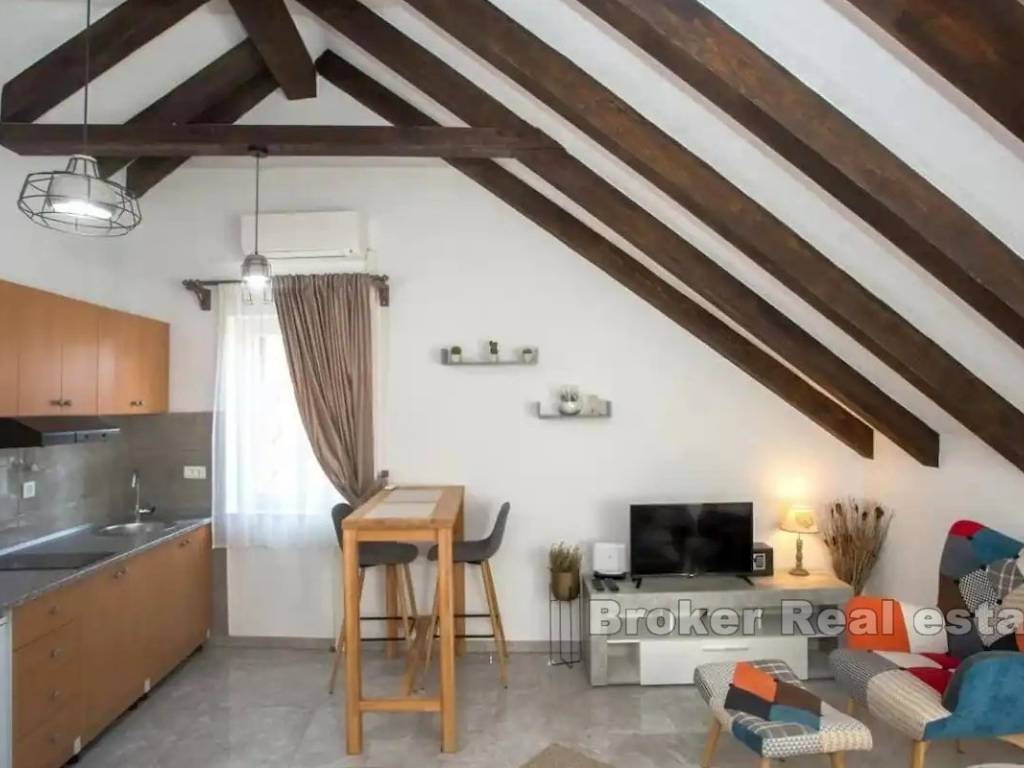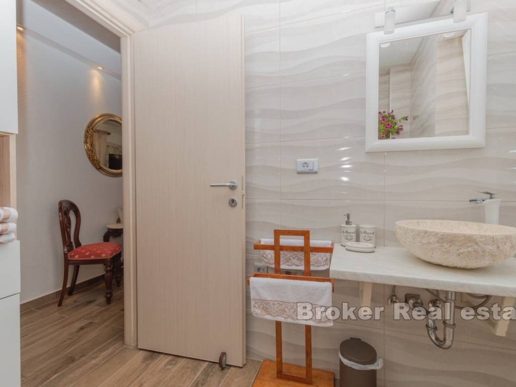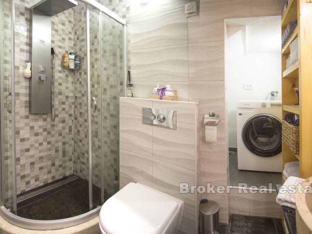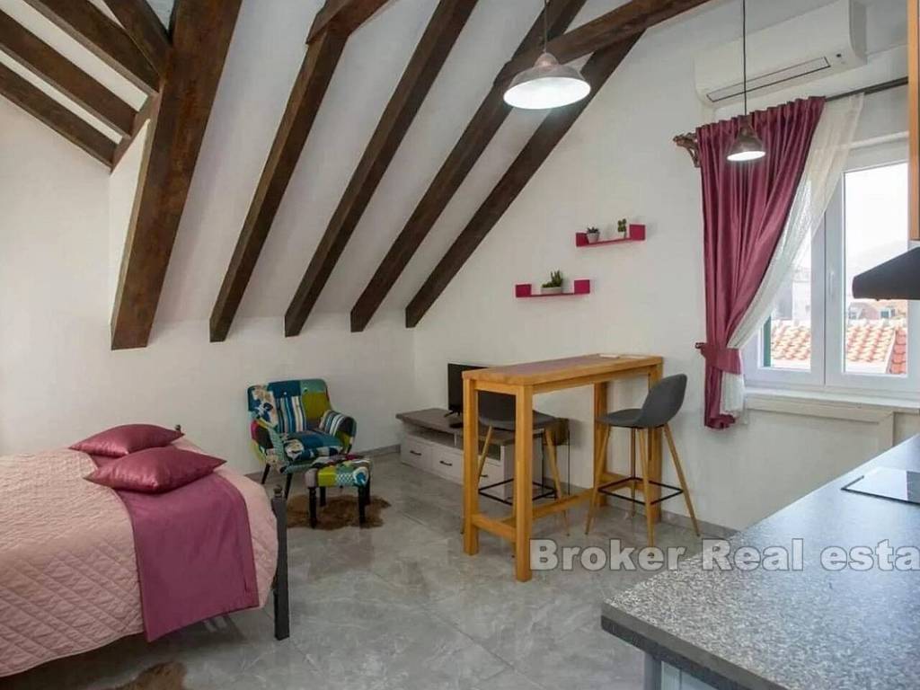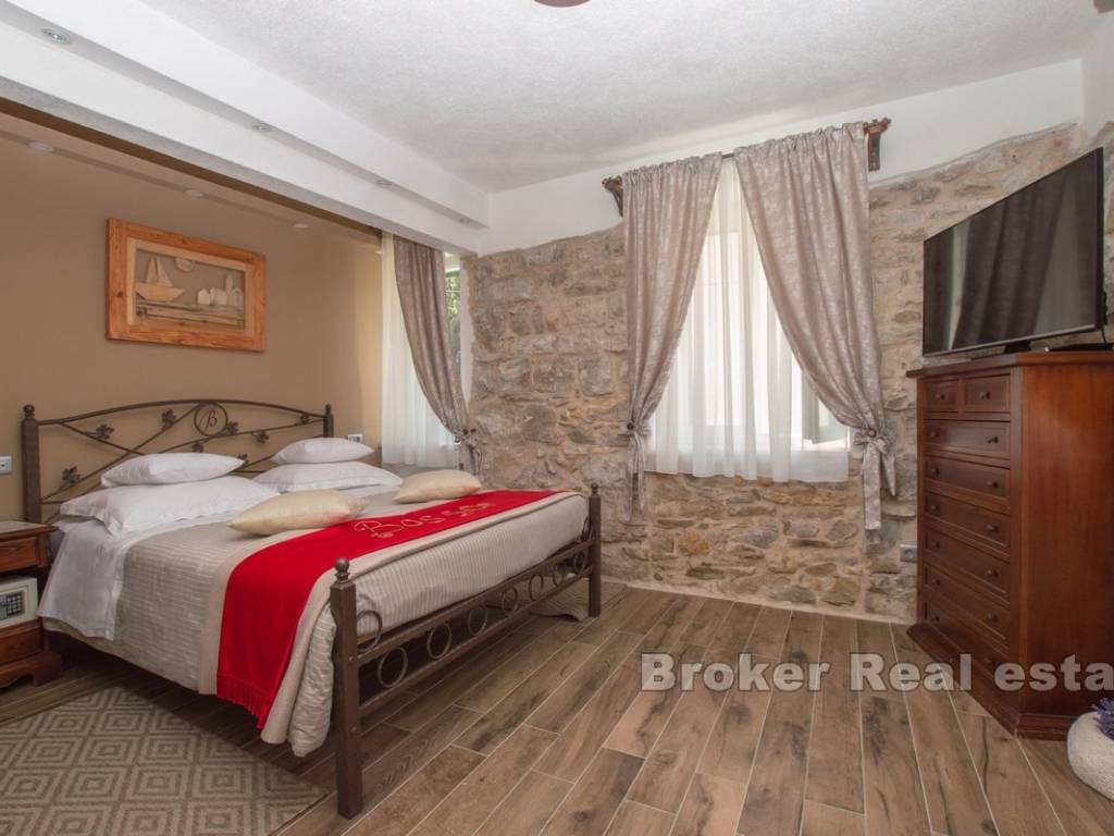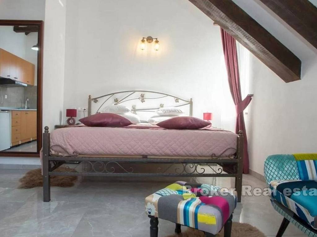 Stone detached house near the city center, just a few minutes away from Diocletians Palace and the waterfront. Its 160 m extends over three floors, consists of five separate units and has a southern orientation. On the ground floor of the house there is a two-room apartment with its own entrance. Above it are four studio apartments with their own kitchens and bathrooms, which are connected by an internal staircase. The two-room apartment on the ground floor consists of an entrance hall, a hallway, two bedrooms, a bathroom, a kitchen with a dining room and a living room with access to the adjoining courtyard with a fireplace. The house was last renovated in 2018 and is equipped with a total of five air conditioners and underfloor heating in the ground floor apartment, and is sold furnished and equipped. There is parking for two cars in front of the building. The facility is an excellent choice for a tourist investment due to its location and proximity to all facilities attractive to tourists.