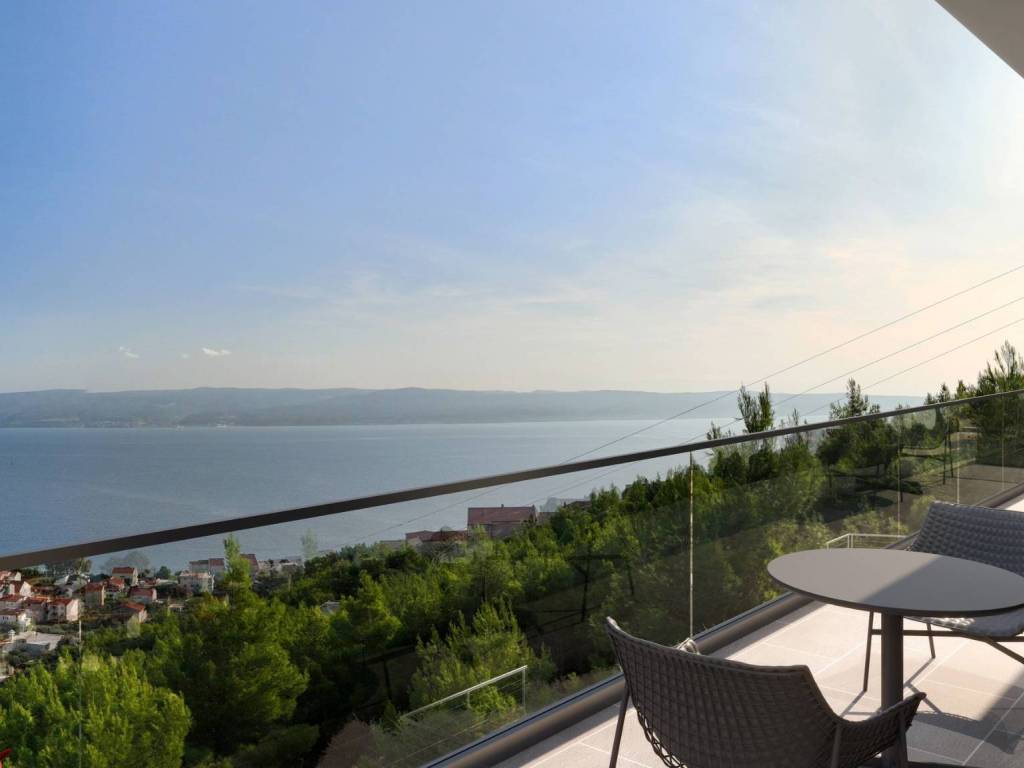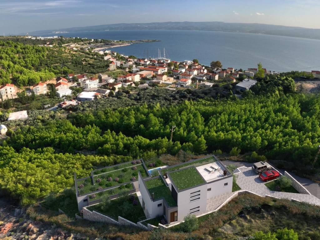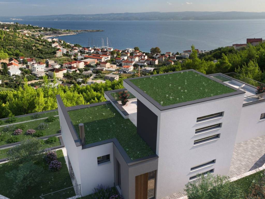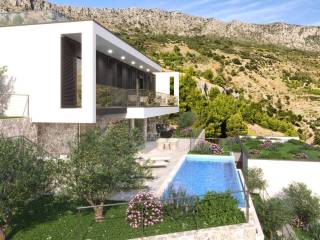 For sale is a modern villa under construction with a view of the sea in the vicinity near the town Omiš. The villa consists of two spacious floors and a superstructure, and its total living area is 252.93 m2 and is located on a plot of land of a total of 656 m2.
