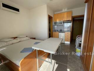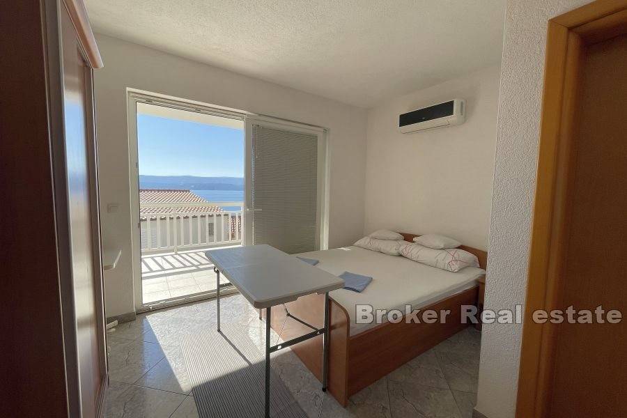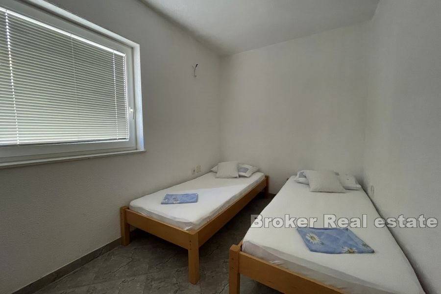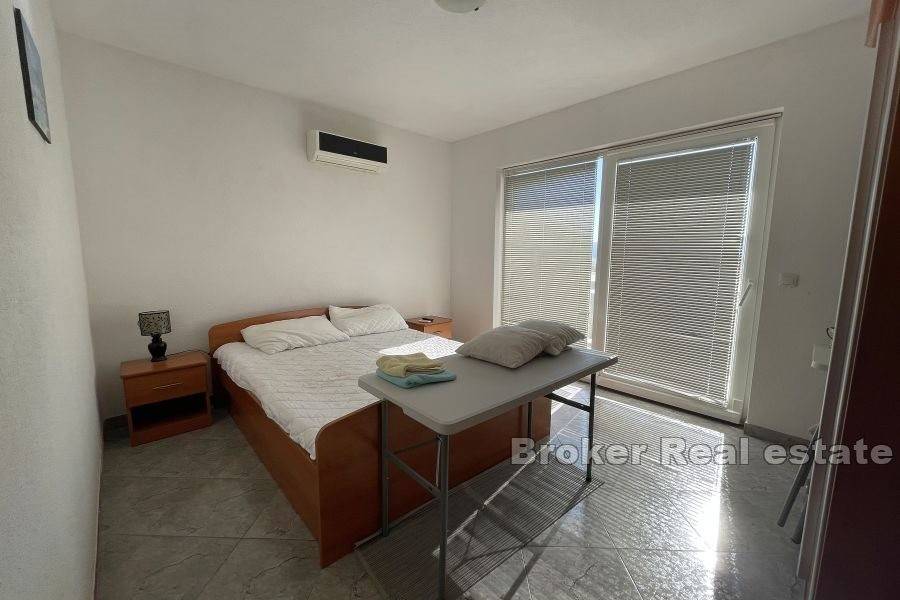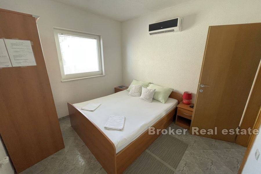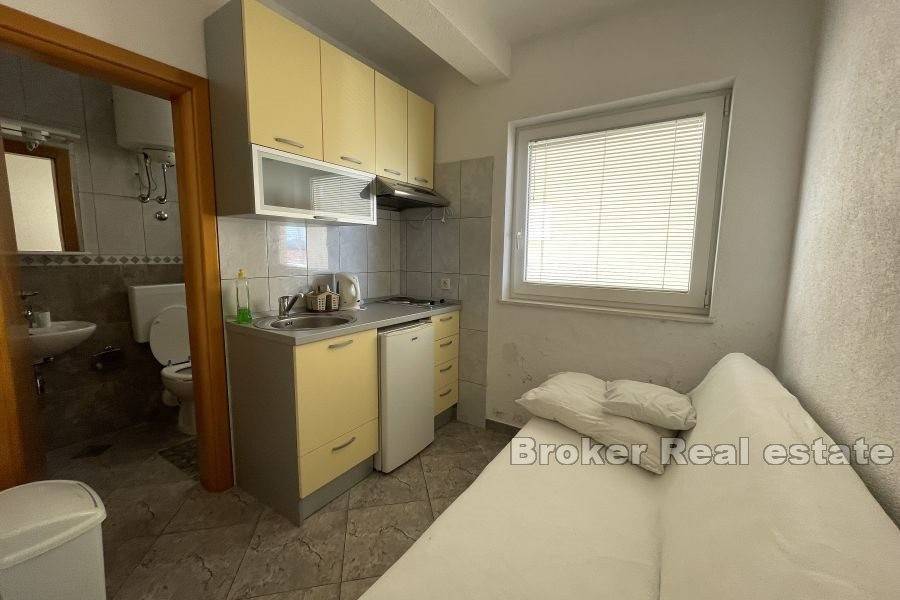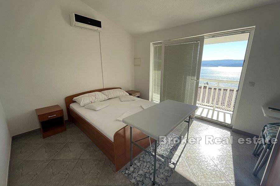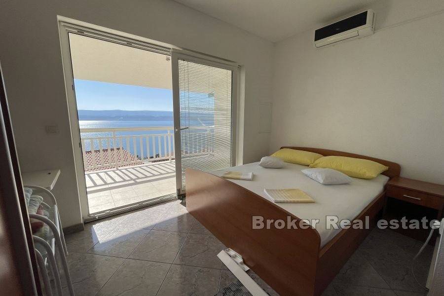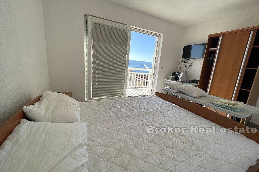 There are three one-room apartments on the second floor. Each of the apartments consists of one bedroom, bathroom, kitchen with dining room, and the apartments have access to a balcony with an unobstructed view of the sea.