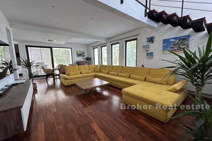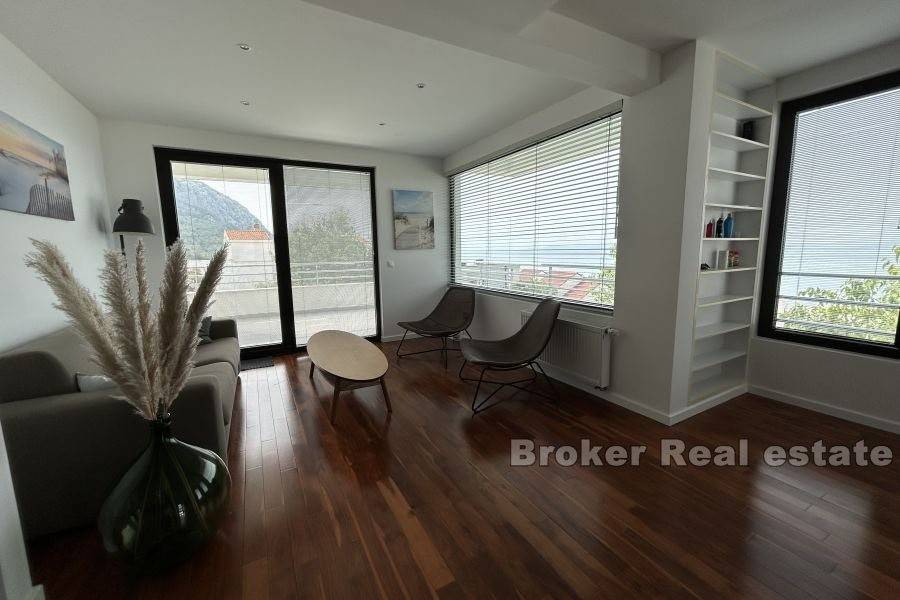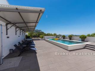 Luxury villa with a swimming pool located on a 690 m2 area with a total of 360 m2 of living space located at the foot of Biokovo with a wonderful open view of the sea. This villa combines luxurious design, comfort and privacy to provide an unforgettable stay for its guests. In the basement of this unique property, there is a wine cellar, a large storage tank and a gym with a sauna. On the first floor there is a spacious living room with a dining room and an exit to the terrace with an incredible view, a bathroom and a storage room. The special feature of this property is the height of the ceilings, which contribute to the feeling of spaciousness and luxurious atmosphere. On the second floor, there are three bedrooms with their separate bathrooms, and a central relaxation area ideal for social gatherings, with direct access to the terrace. This villa is an ideal choice for those who are looking for luxurious accommodation in a quiet environment, but also close to the attractions and activities that Makarska has to offer.