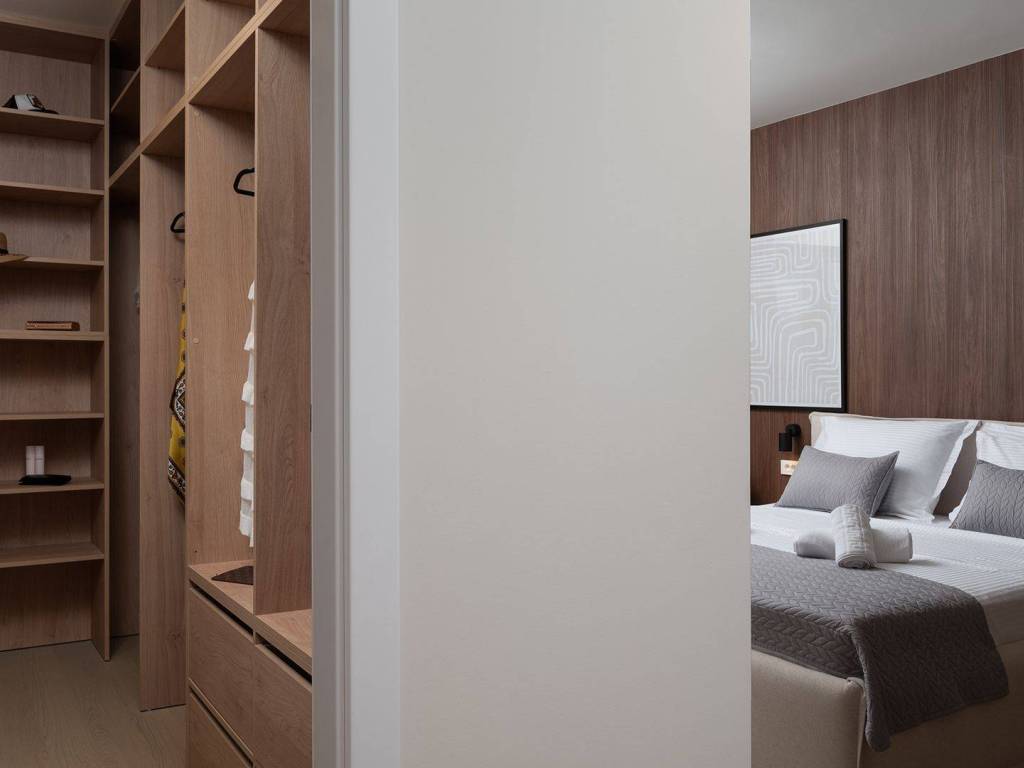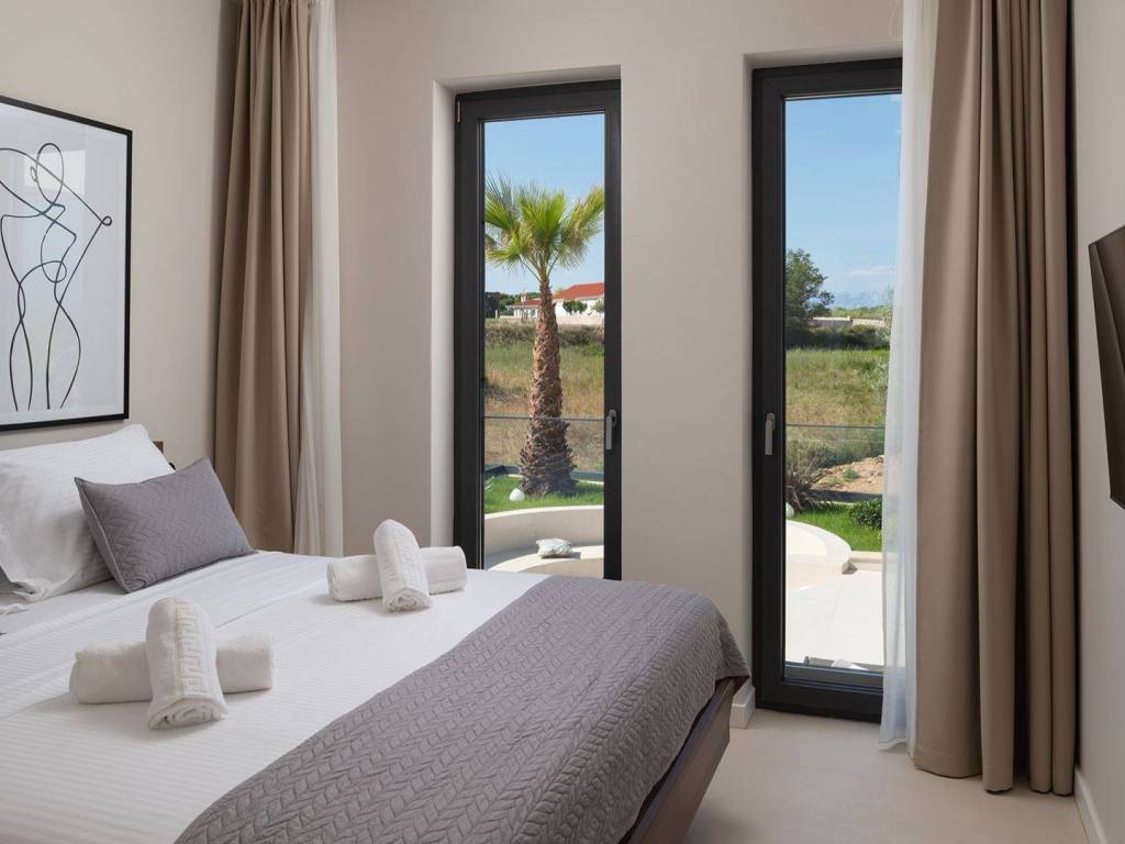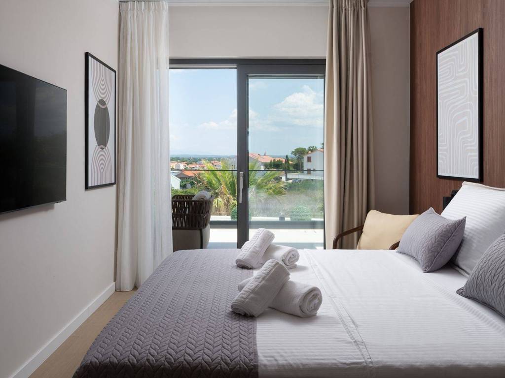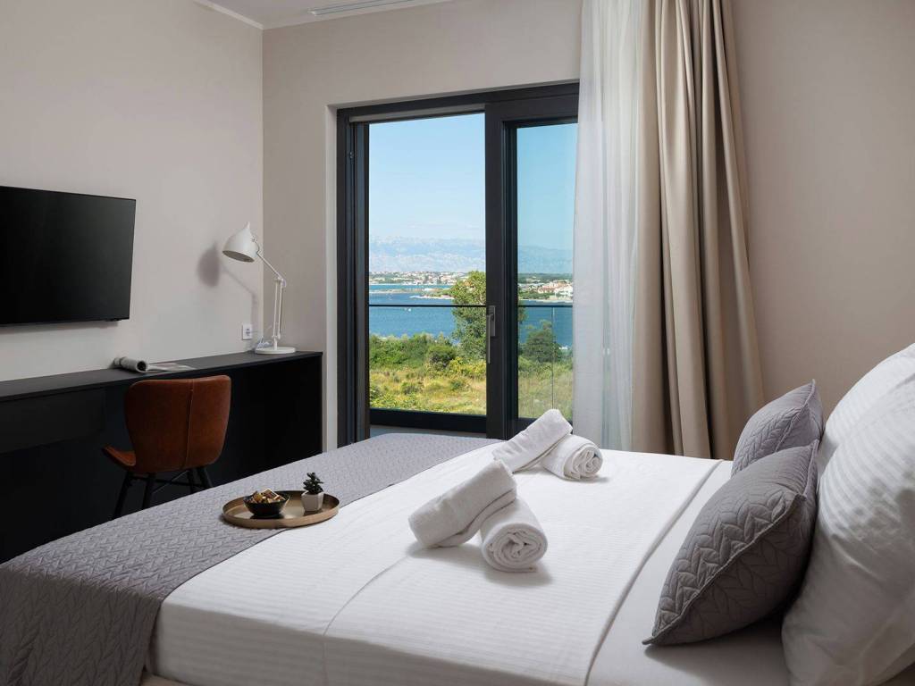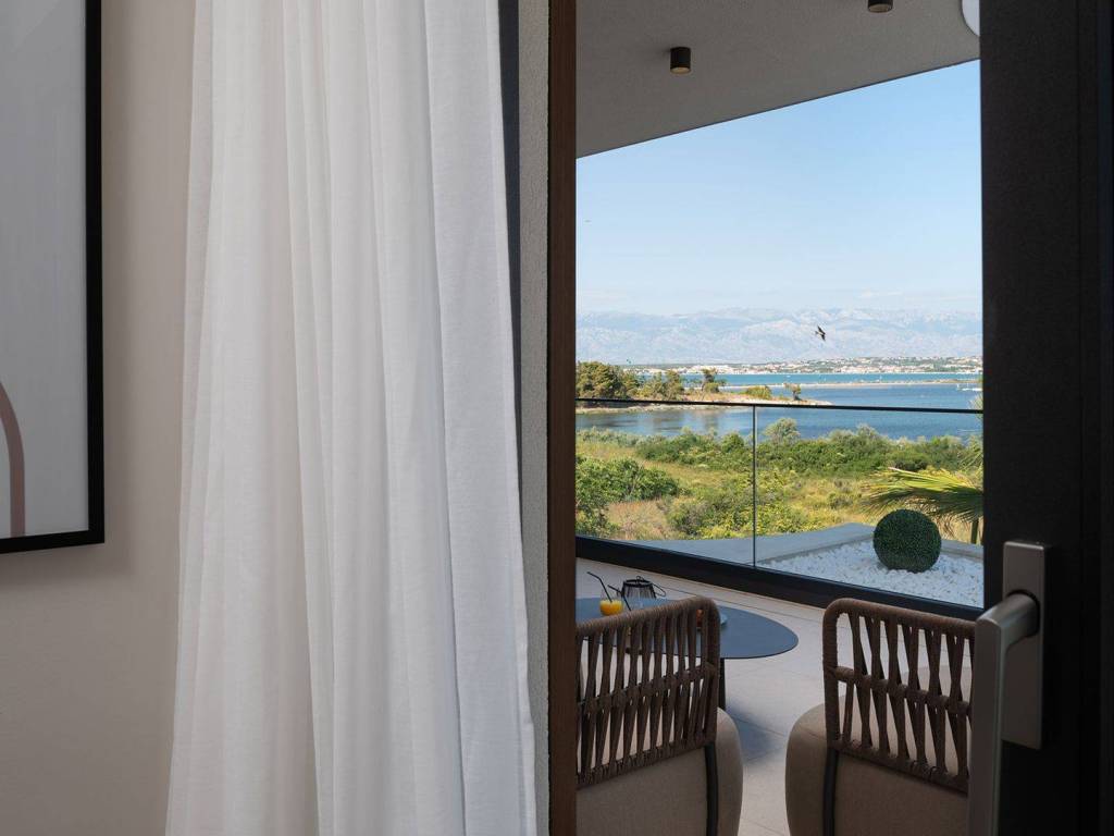 Luxury villa with pool and sea view located in a quiet location in Zadar, 130 m from the sea. The villa with a total living area of 277 m2 is located on a plot of land of 632 m2, and consists of a ground floor and the first floor. On the ground floor there is an open concept kitchen, dining room and living room, one bedroom with its own bathroom. From the living room there is access to a spacious terrace which leads to a heated pool of 38 m2 with a sun deck and outdoor furniture. The first floor consists of three bedrooms with private bathrooms, one of which has a wardrobe. All rooms have access to the terrace with sliding glass walls which offers a stunning open view of the sea. The villa is under video surveillance and fully air-conditioned, electric underfloor heating installed in the bathrooms, living room and dining room. The landscaped cultivated garden is fenced and offers private parking spaces with an electric charger. Close to the sandy beach and all necessary facilities for living.