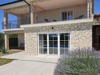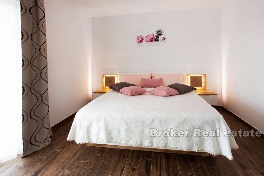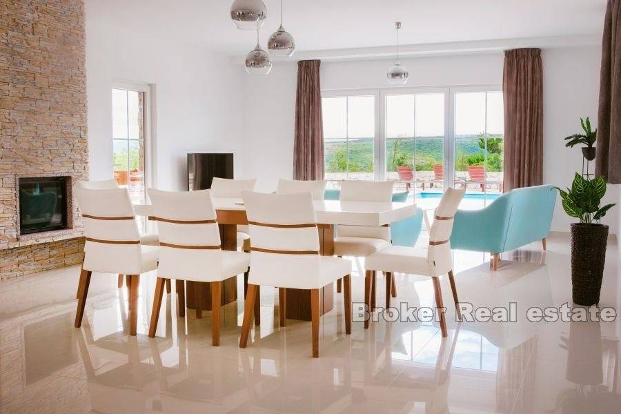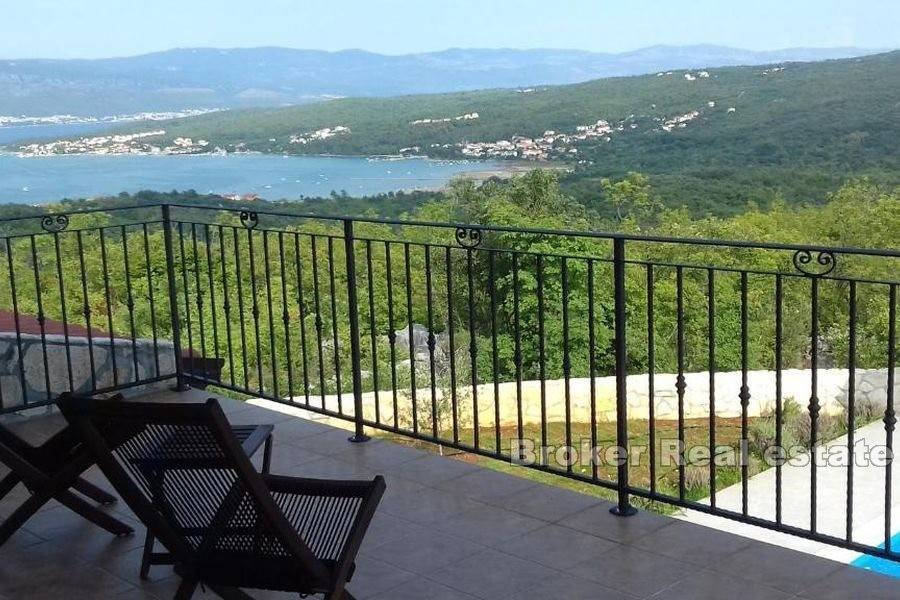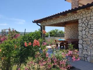 A beautiful property for sale located in a peaceful and quiet location. The house is spread over three floors with a total living area of 250 m2. In the basement there is a room for gathering with friends and family. The ground floor consists of a large living room, kitchen and dining room, bathroom and bedroom with a separate bathroom. Through the living room you can access the beautiful garden where there is a swimming pool with a sunbathing area and a covered terrace with a barbecue and a storage room. Upstairs are two large bedrooms with separate bathrooms. The bedrooms have access to a large balcony with an irresistible view of the sea. The house has solar panels for heating water. Given the location and very little traffic around the house, privacy is guaranteed. Next to the plot of the house there is another building plot of about 550 m2, which is sold together with the property.