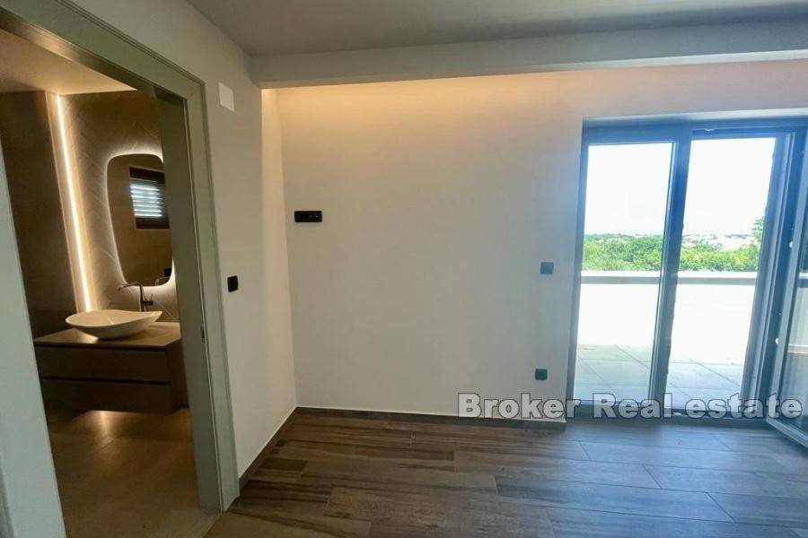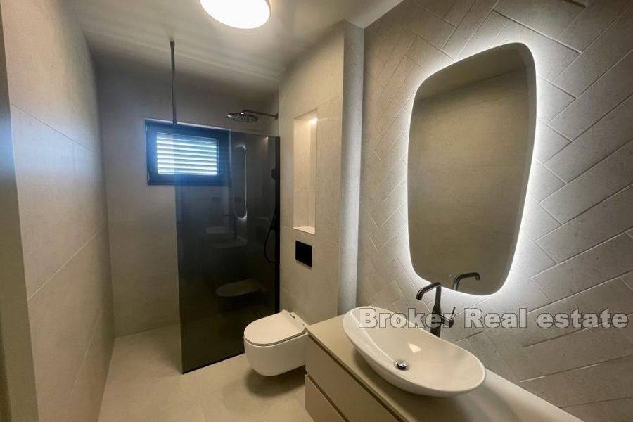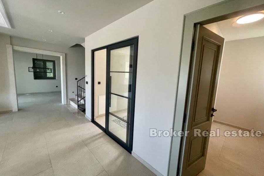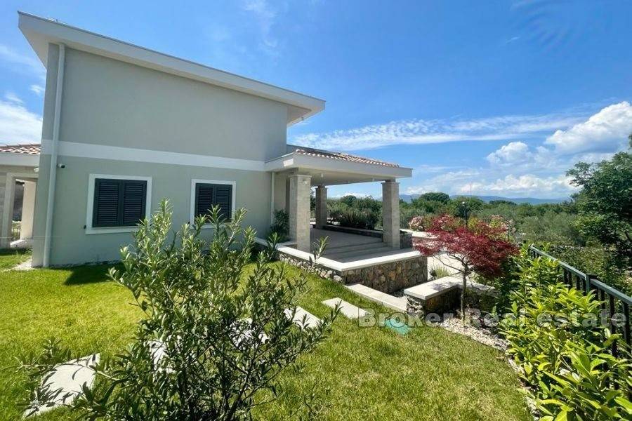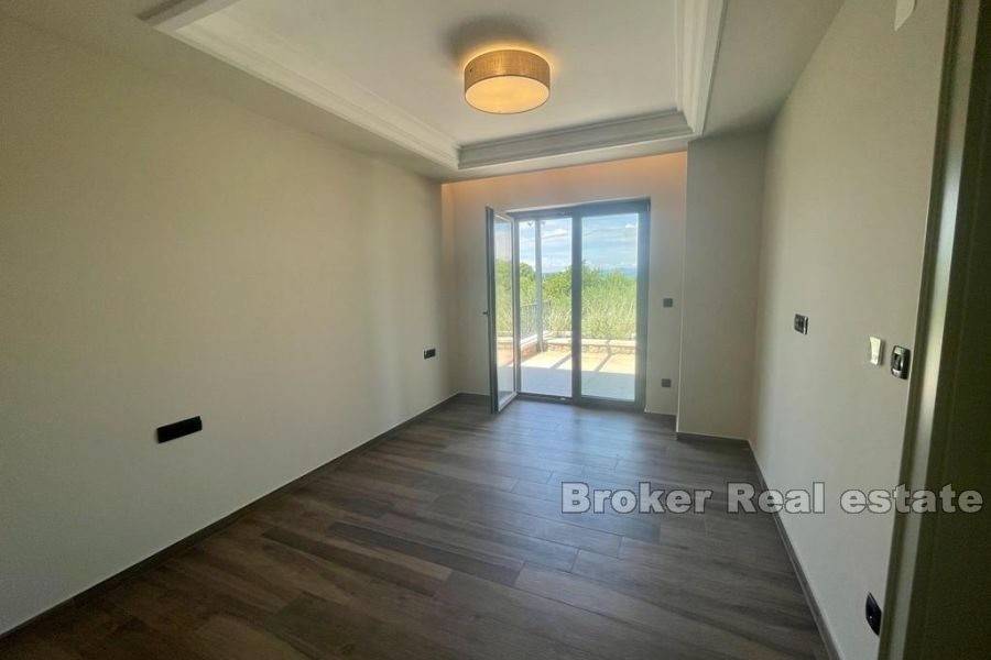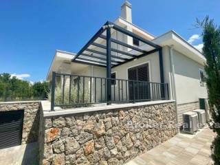 For sale is a detached villa in an exceptional position on the island of Krk, in the vicinity of Malinska. The beautiful villa has a living area of 320 m2 and is located on a plot of land with a total area of 500 m2. It is divided into three floors. The basement consists of a corridor, a toilet. taverns, fitness and wellness facilities for rest and relaxation. The ground floor consists of a corridor, a bedroom, a toilet, a storage room and a spacious living room through which there is an exit to the covered terrace where there is a summer kitchen. The first floor consists of three bedrooms, three bathrooms and a terrace with an irresistible view of the sea. The property is fully air-conditioned and decorated in a modern and minimalist style.