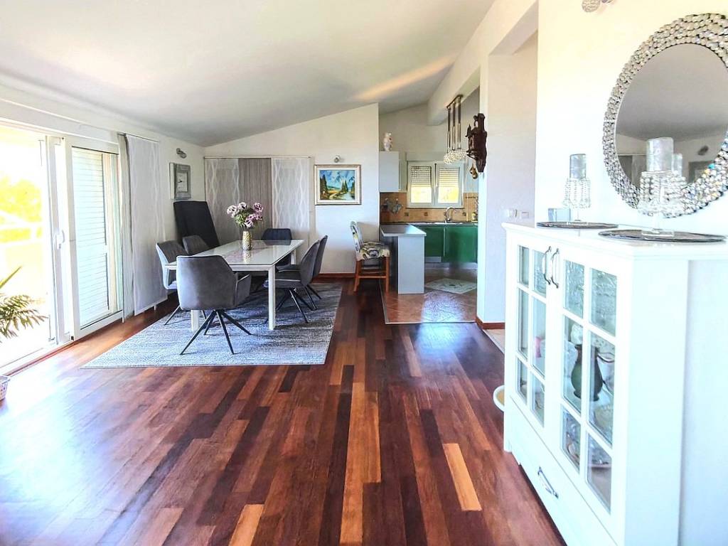 On the first floor there is an apartment with four rooms, a bathroom and a toilet, a modern kitchen and dining room, a living room and a large terrace with a wonderful view of the sea and the islands.