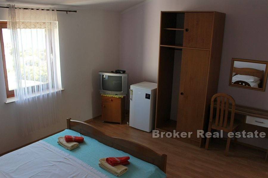 On the third floor there are four bedrooms with attached bathrooms and access to a balcony overlooking the sea. The property has been in business as a boarding house for many years.
