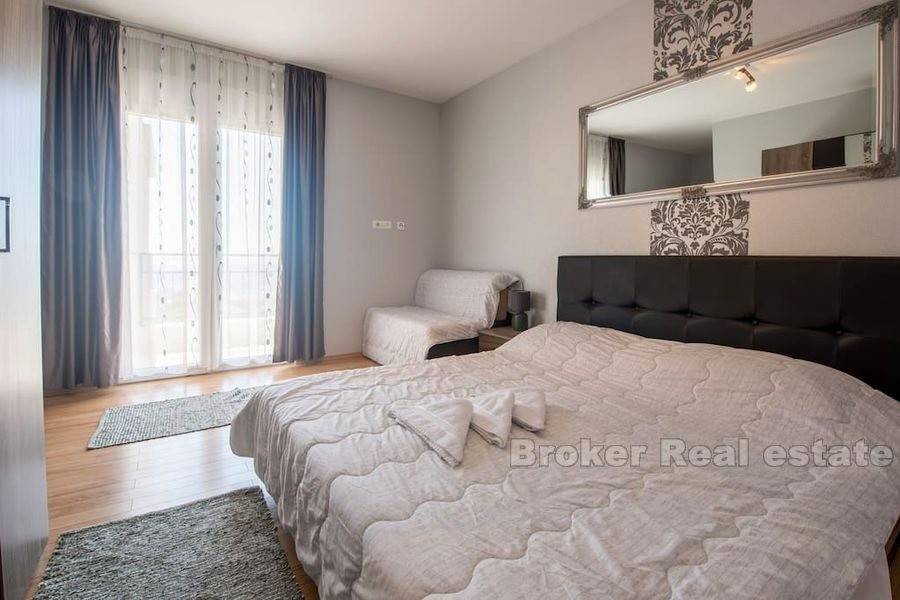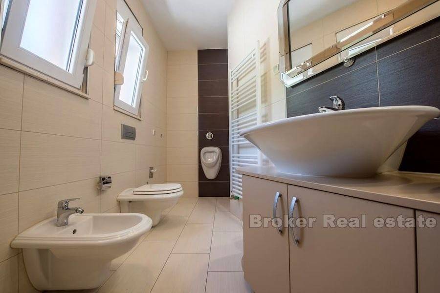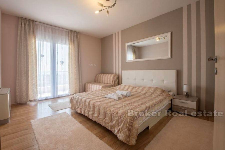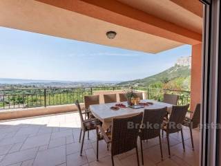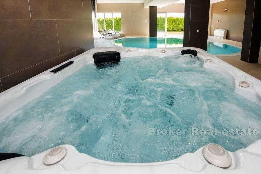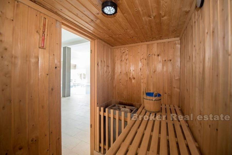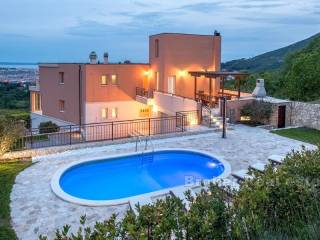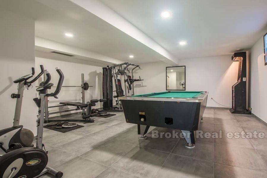 Newly built comfortable villa with pool is located on a small hill and offers a breathtaking view of the city of Split and the sea. The villa is built on three floors and consists of a kitchen, dining room, living room, five bedrooms, four bathrooms, a gym and inside swimming pool of 43 m2, with jacuzzi. Fully furnished and equipped with a beautiful garden of pool and is suitable for housing and for the purposes of tourism.
