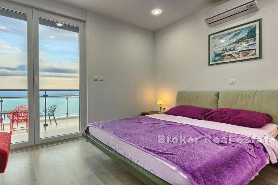 On the last, third floor, there are three en suite bedrooms, with private bathrooms and access to the balcony, which, again, offers an open sea view.