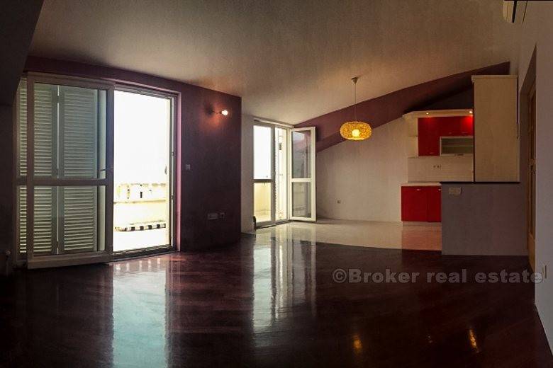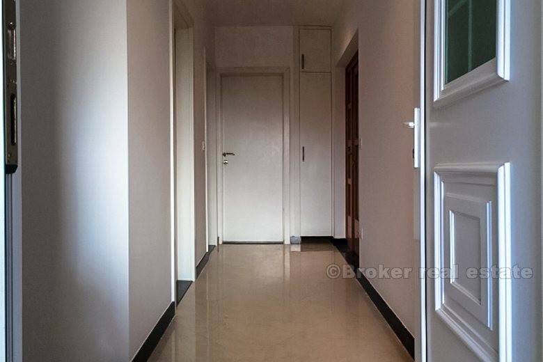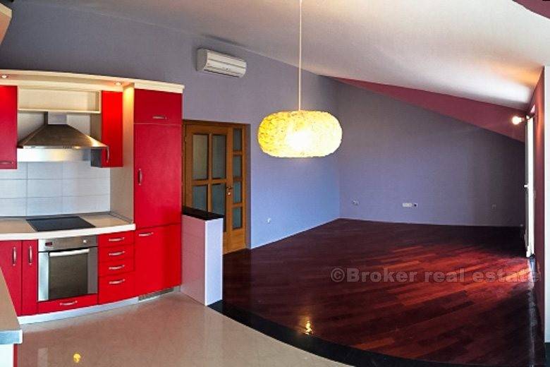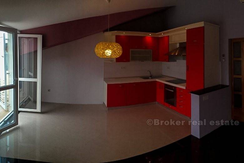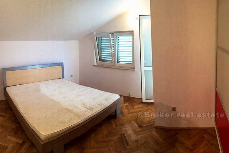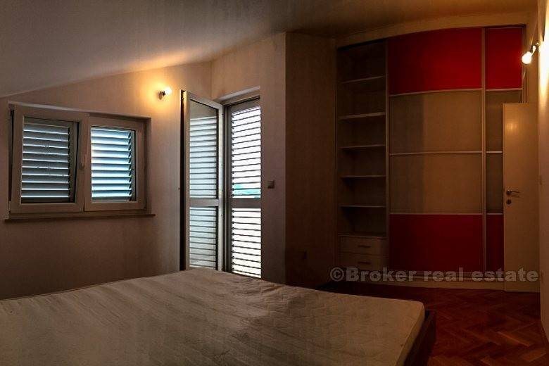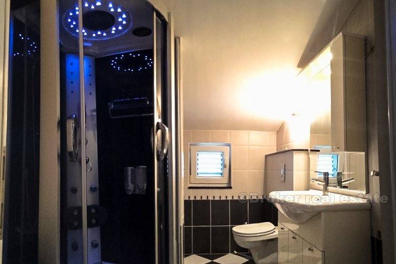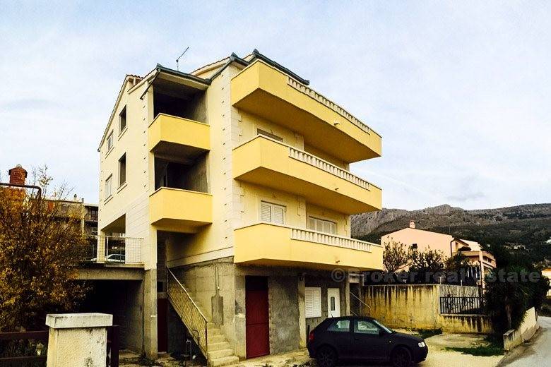 Detached house in Podstrana (new building) is only 500 meters from the sea-beach, total living area of 400 m2 with garden 250 m2 with two large garages with spacious terraces. The house consists of 2 bedroom apartments, one bedroom apartment, ground floor and unfinished and 2 garages. It is completely newly furnished and equipped. Floor: ground floor, 1st floor, 2nd floor and attic. Close to the hotel Leo, highway, bus station, beach, etc.