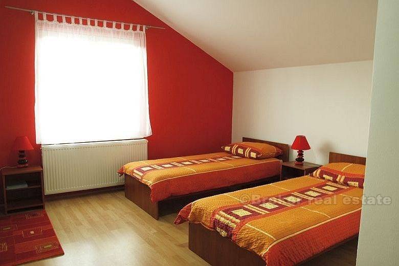 On the ground floor is a restaurant 55m2, Kitchen 15m2, Three toilets, apartment 42m2, Garage and large terrace about 30m2.On the first floor is divided into five apartments of 20m2 up to 50m2.