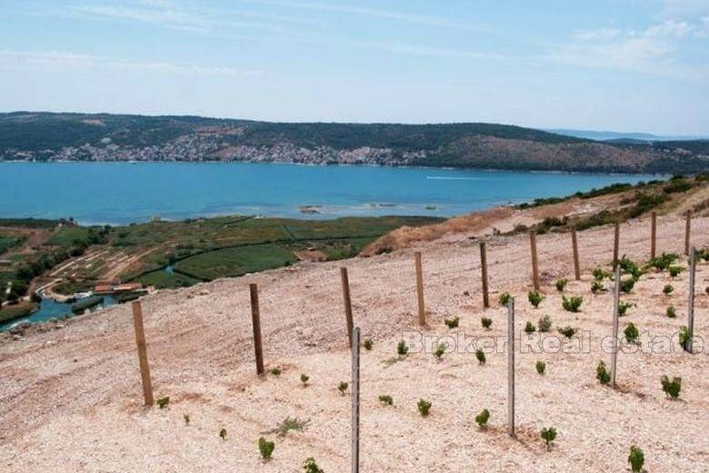 Agricultural cultivated land of 13600 m2 turned into a young vineyard, located on the southern slopes of the UNESCO town of Trogir. The land provides a fascinating view of the sea and the whole of the Troy archipelago. There are about 4000 young squares planted on the land (1700 blue flowers, 1700 cauldron criminals, little cabernets and cabernet sauvignon). On the north side of the plot, there is a large drywall that has an ominous role in the wind and with which 90 young olives have been planted. There are also 35 m3 water reservoirs.