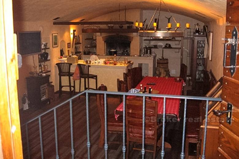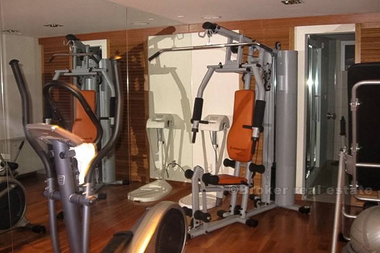 The villa consists of 3 bedrooms, 5 bathrooms, living room, kitchen, tavern, wine cellar, sauna, gym and a large terrace with sea view.