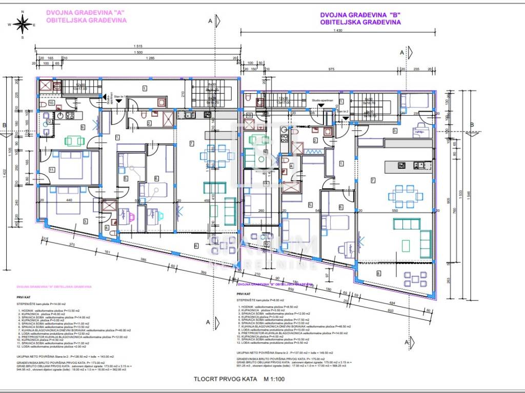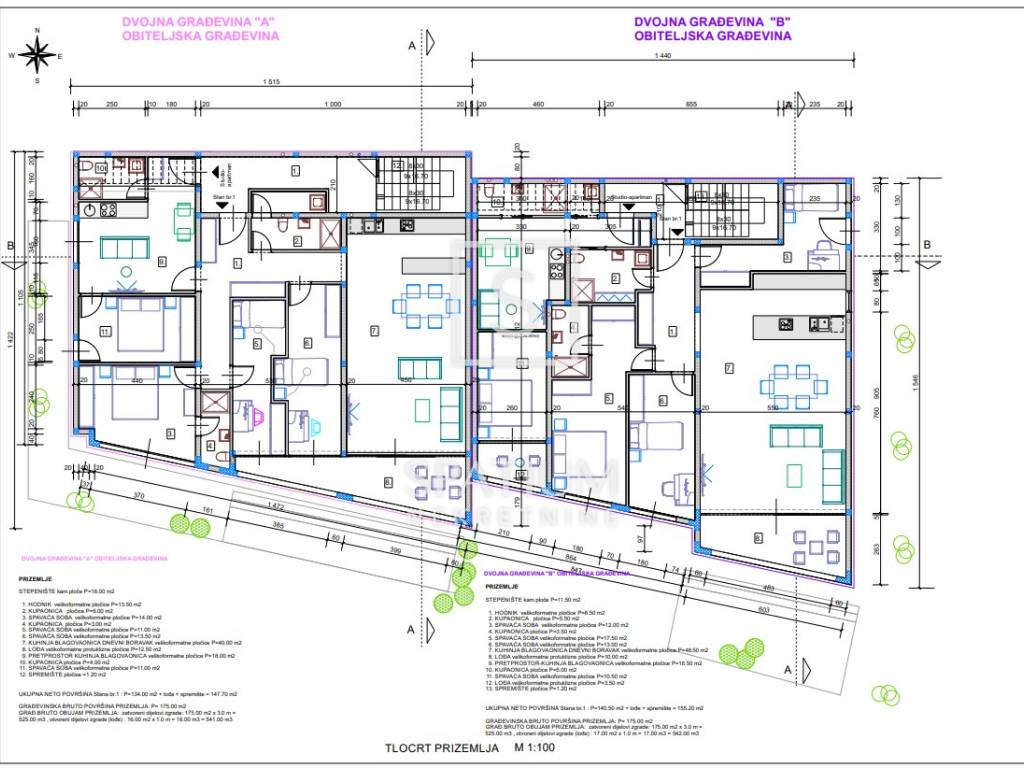 The area of the apartments will be approximately 150 m2 and each apartment will have three parking spaces and a storage room. With a well-designed layout, spaciousness and a beautiful view of the sea from the ground floor, it will represent a beautiful and pleasant place for family living.