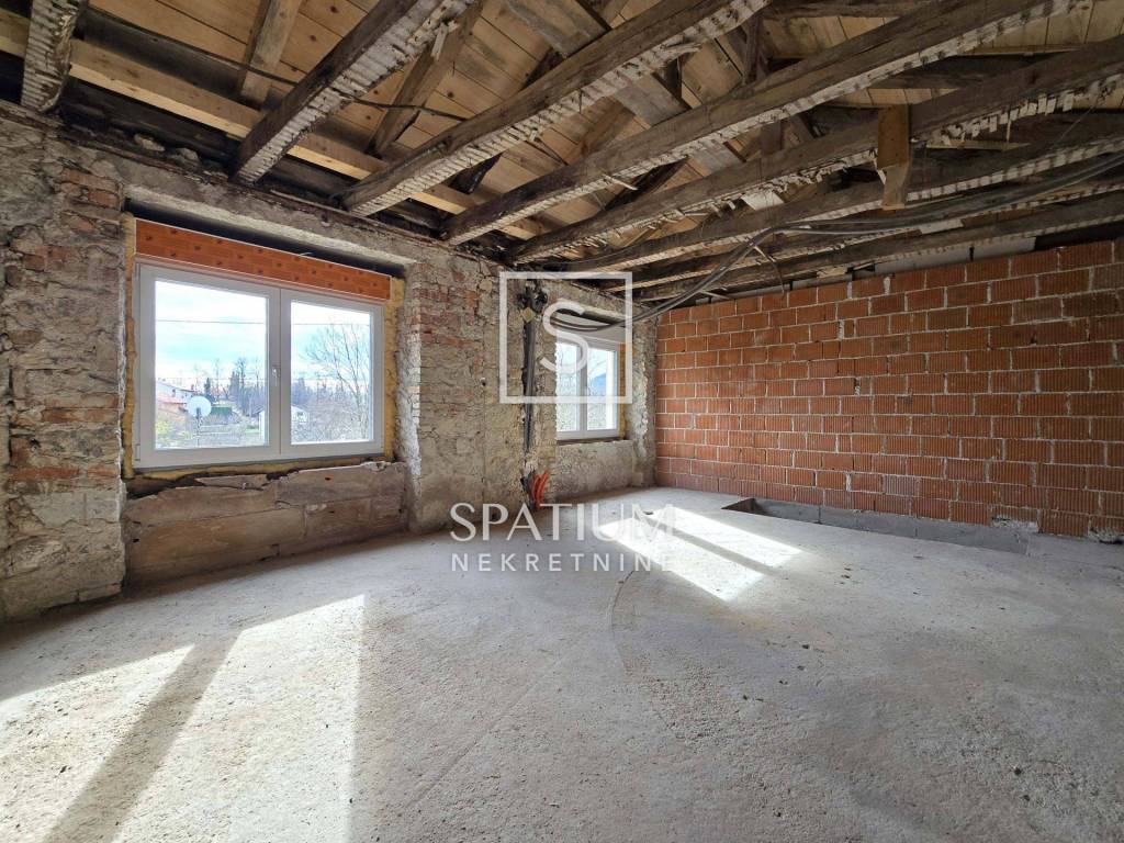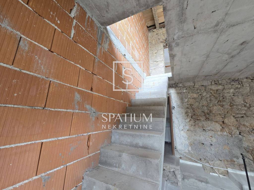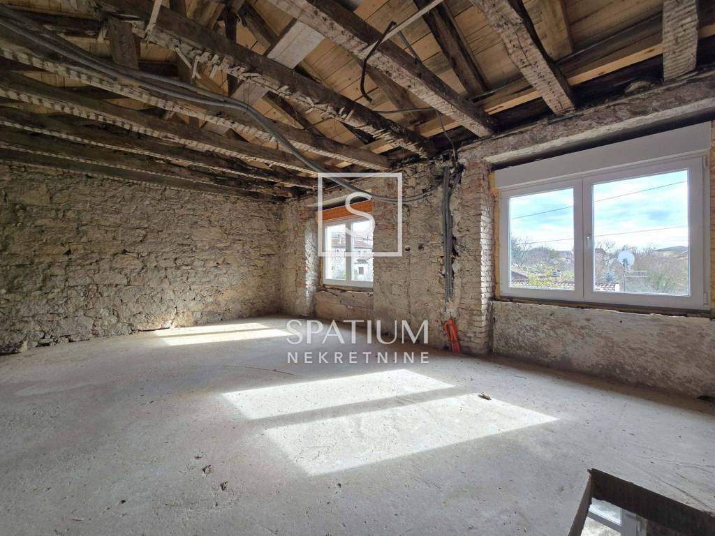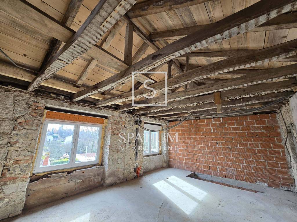 The front, southern, ground floor part of the stone house can be converted into an excellent living room connected to the tavern in the basement. There is also a bathroom on the ground floor. Internal stairs lead to the first floor where you reach the spacious front part with a new, open roof from which there is a beautiful view of the surroundings and greenery. The rest of the floor is occupied by a bathroom, two bedrooms and a kitchen with a dining area that leads to a balcony. The attic space can also become additional living space. Given the orientation of the house, the southern terrace is abundant in the morning hours and the northern one in the afternoon.