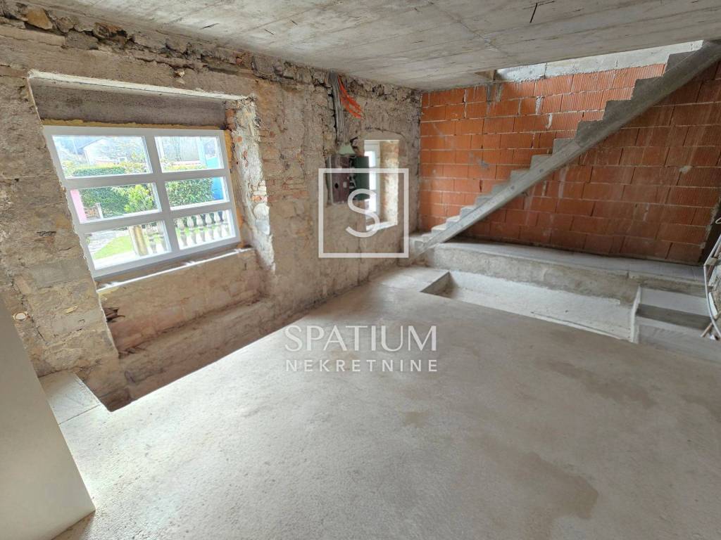 MUČIĆI, MATULJI, we offer a family, semi-detached house in the renovation phase. It consists of a basement, ground floor, first floor and attic and also has a tavern, garden house and an area with an outdoor fireplace. The net living area is 186.98 m2.