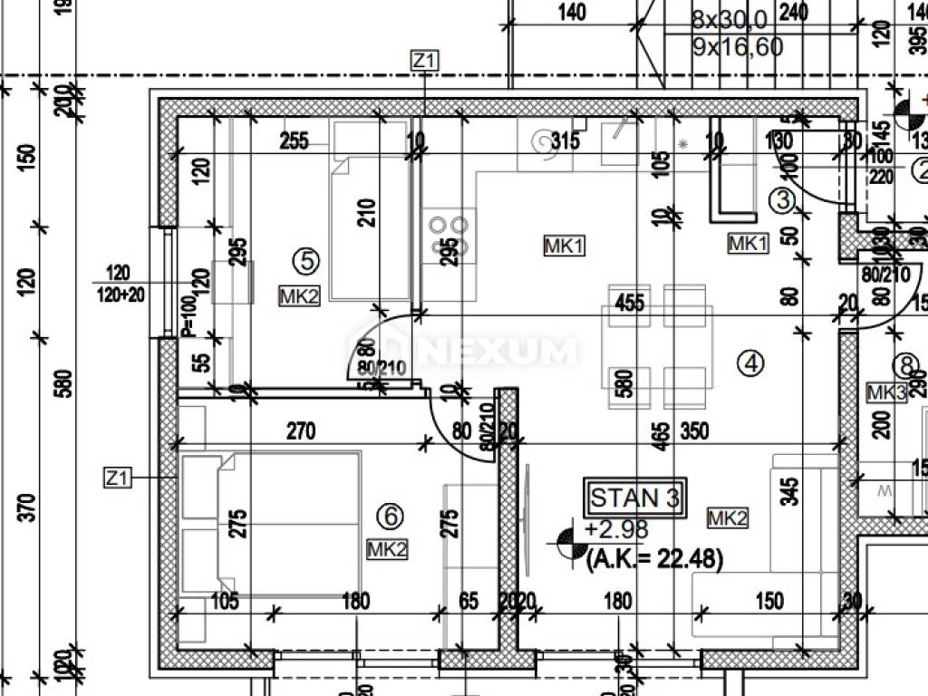 Trogir – Two-bedroom apartment S3 on the 1st floor with 10.90 m² balcony