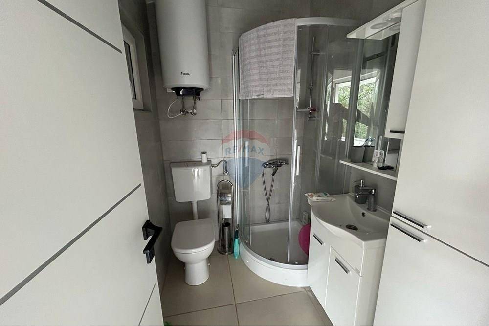 A semi-detached house for sale in Potočnica, located in a small and quiet village, only 250 m from the sea, ideal for a holiday or tourist rental. The property consists of a ground floor and an upper floor, with one functionally arranged apartment on each floor.