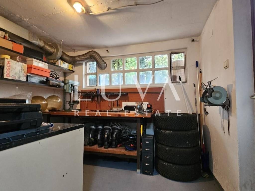 Basement: four rooms + bathroom; two used as storage, one converted into a small office space, and one functioning as a workshop.