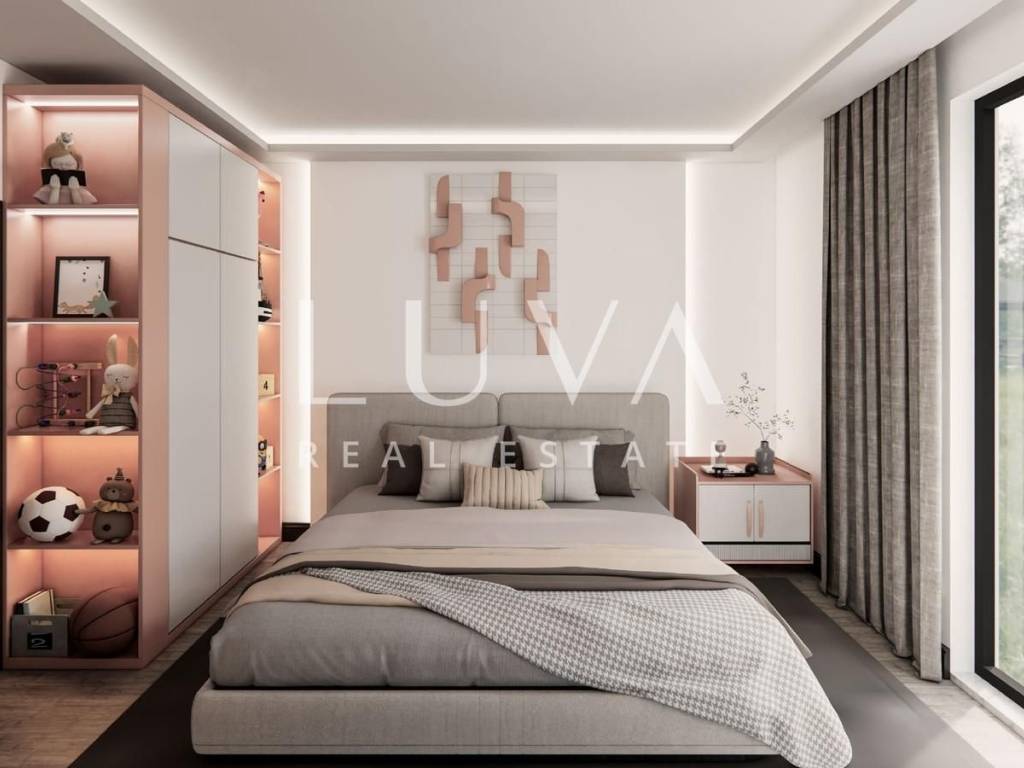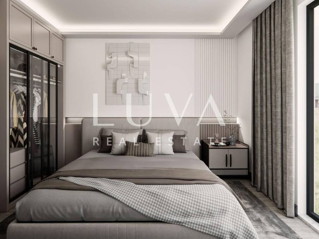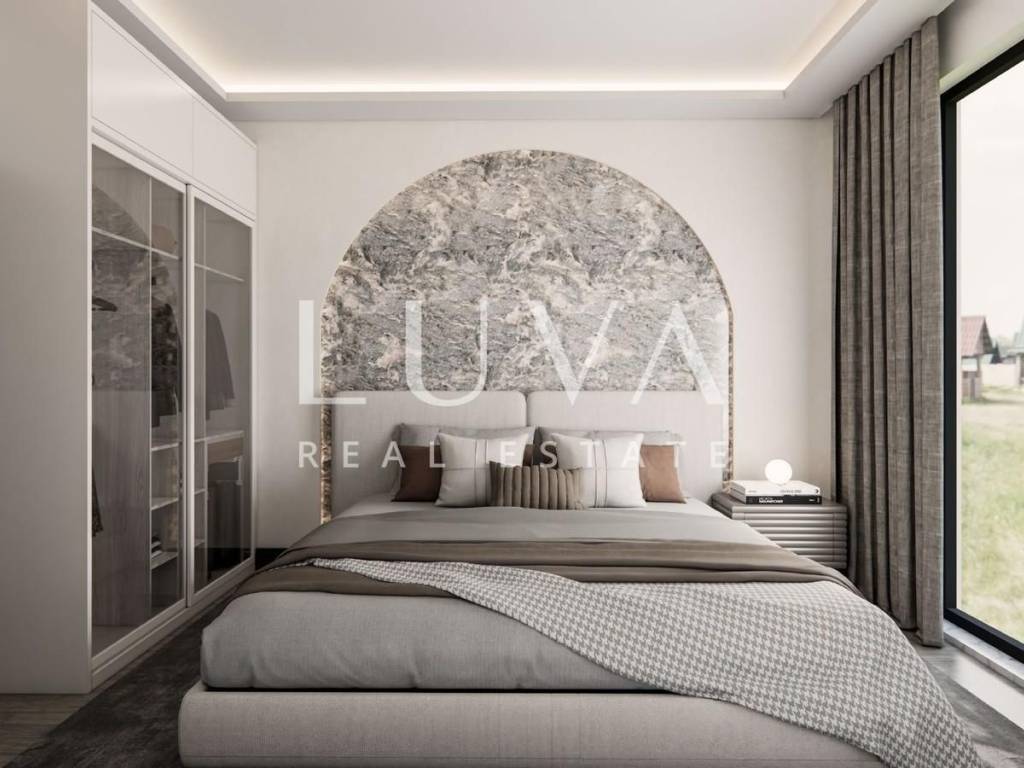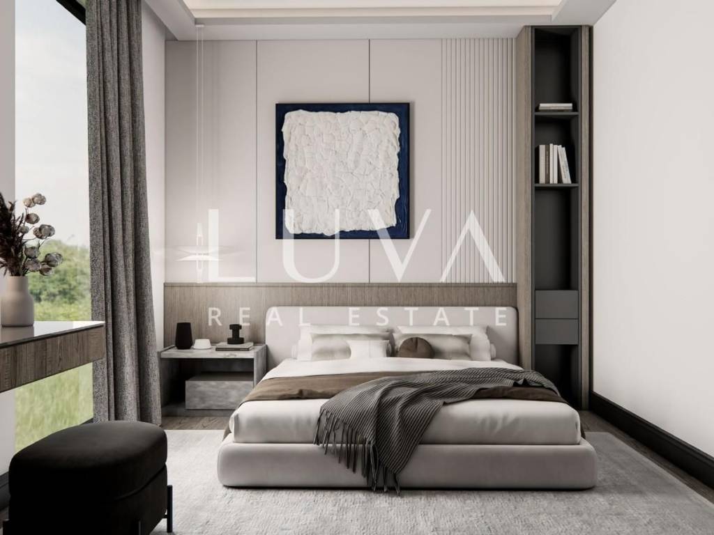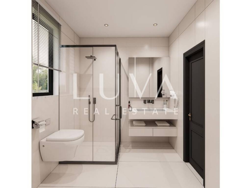 Special attention has been paid to construction quality and luxury details: exterior aluminum joinery with triple-glass windows, electric shutters and mosquito nets, interior joinery from a renowned Italian manufacturer with hidden fittings, underfloor heating, air conditioning units, security doors, intercom with monitor, as well as ceramic tiles and parquet chosen by the buyer. Large glass surfaces fill the apartment with natural light throughout the day, and every detail has been executed to the highest standards.