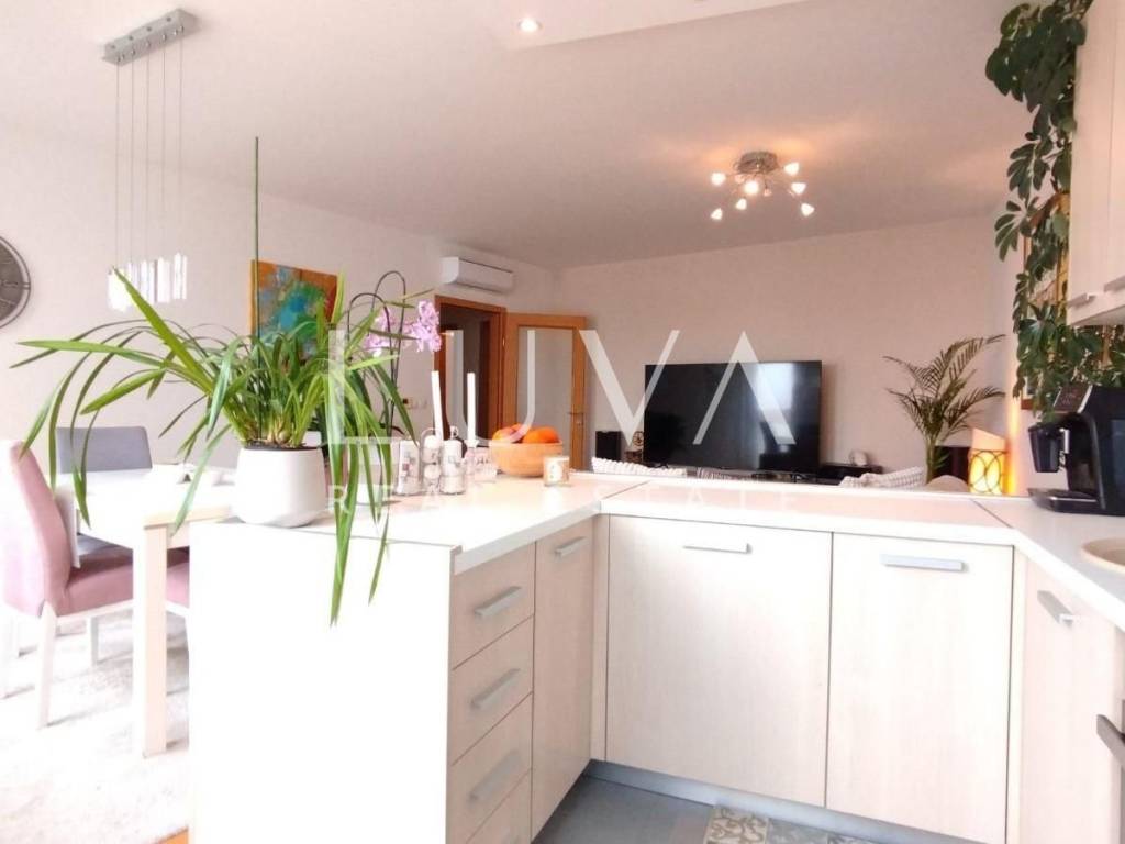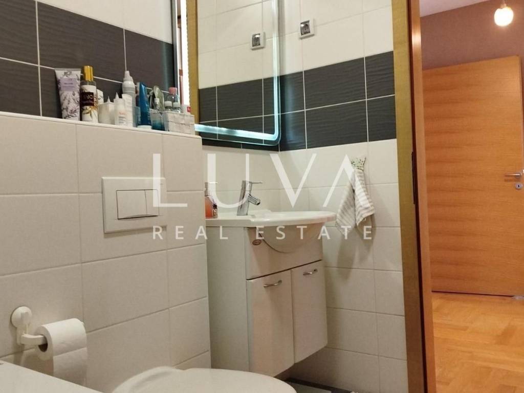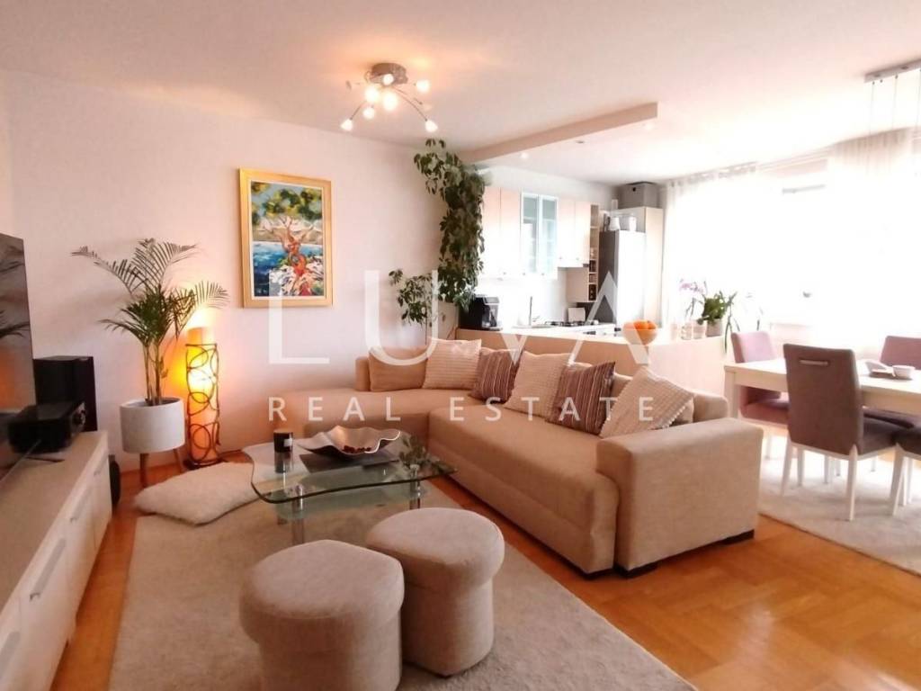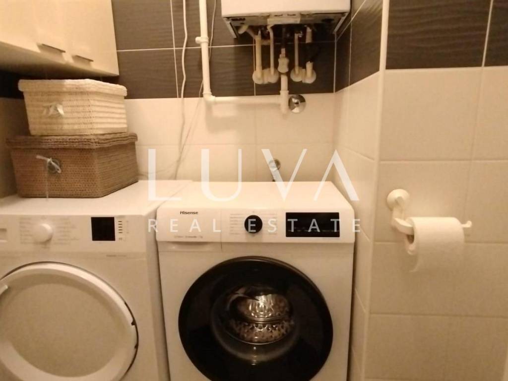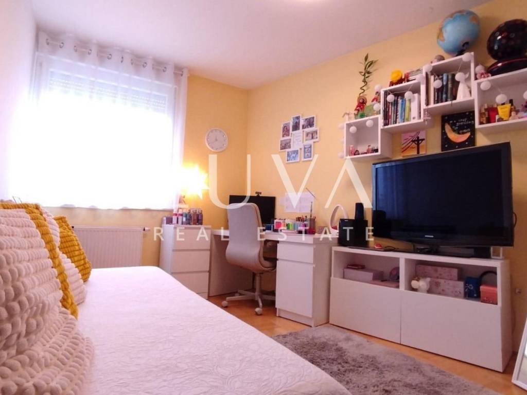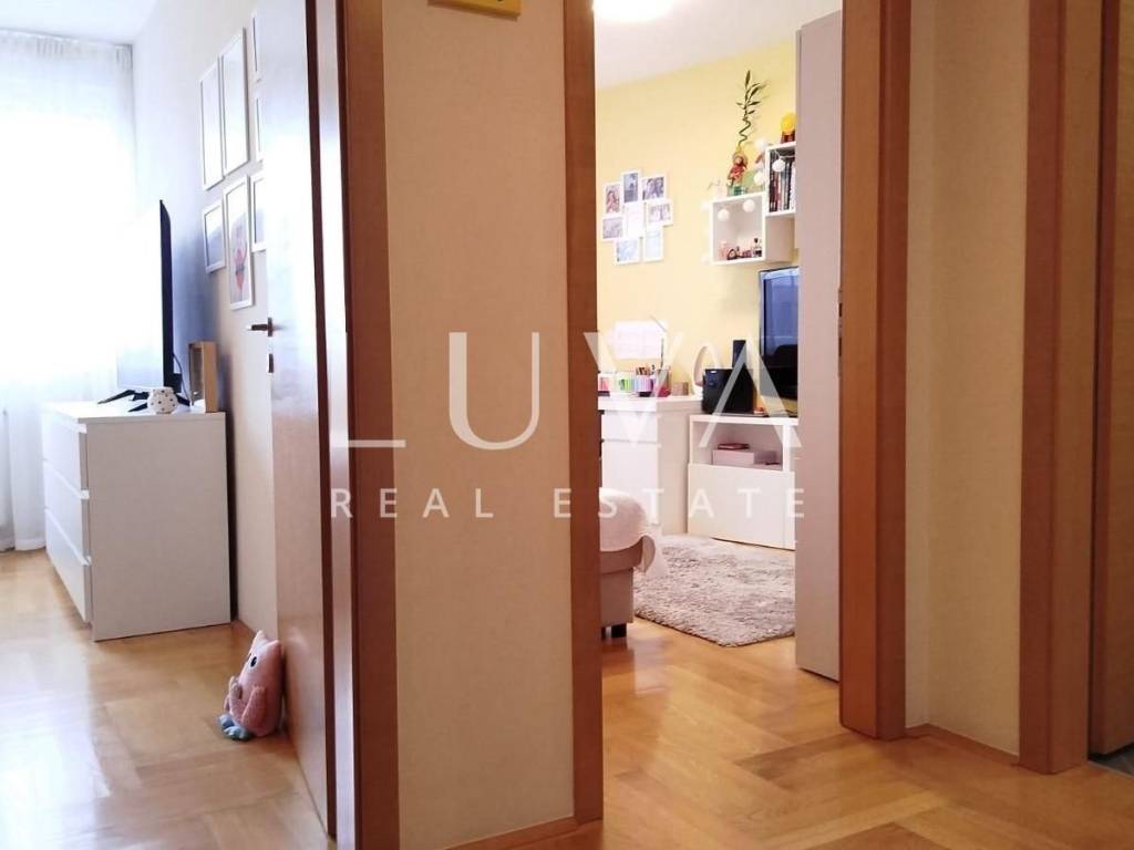 The apartment is situated in a quiet family neighborhood, surrounded by greenery and a pleasant environment, yet close to numerous shops, an elementary school and kindergarten, bus and train stations, hospitality venues, and all other amenities needed for comfortable living.