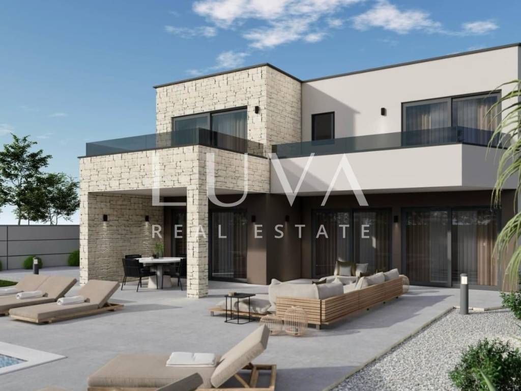 In the small and peaceful village of Pajići, located in the heart of Istria, a modern villa is being built offering a perfect blend of luxury, comfort, and complete privacy. This villa is situated on a 1400 m² plot, with a total living area of 235 m² spread across two floors.