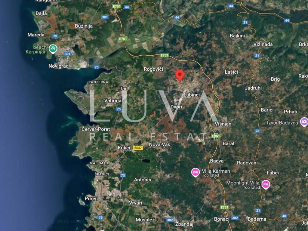 An attractive building plot of 1,011 m² is for sale, located in an exceptional location in a quiet cul-de-sac in Kaštelir. The plot has a gentle slope towards the sea, allowing for spectacular sea views even from the ground floor of the future villa.