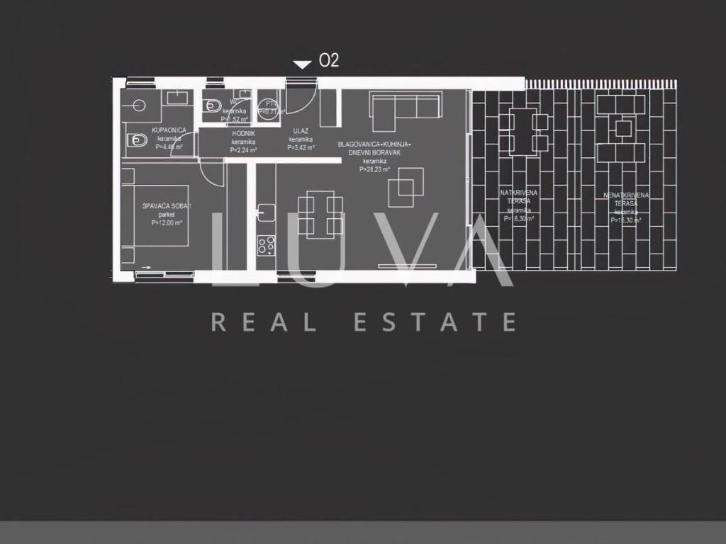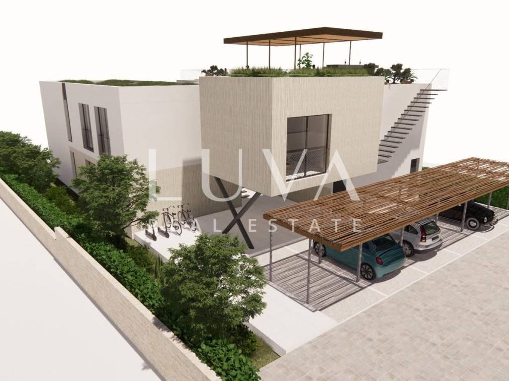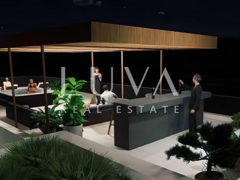Luxury one-bedroom apartment on Ugljan, located in the first row to the sea, with a net area of 52.58 m² and a terrace of 32.60 m².