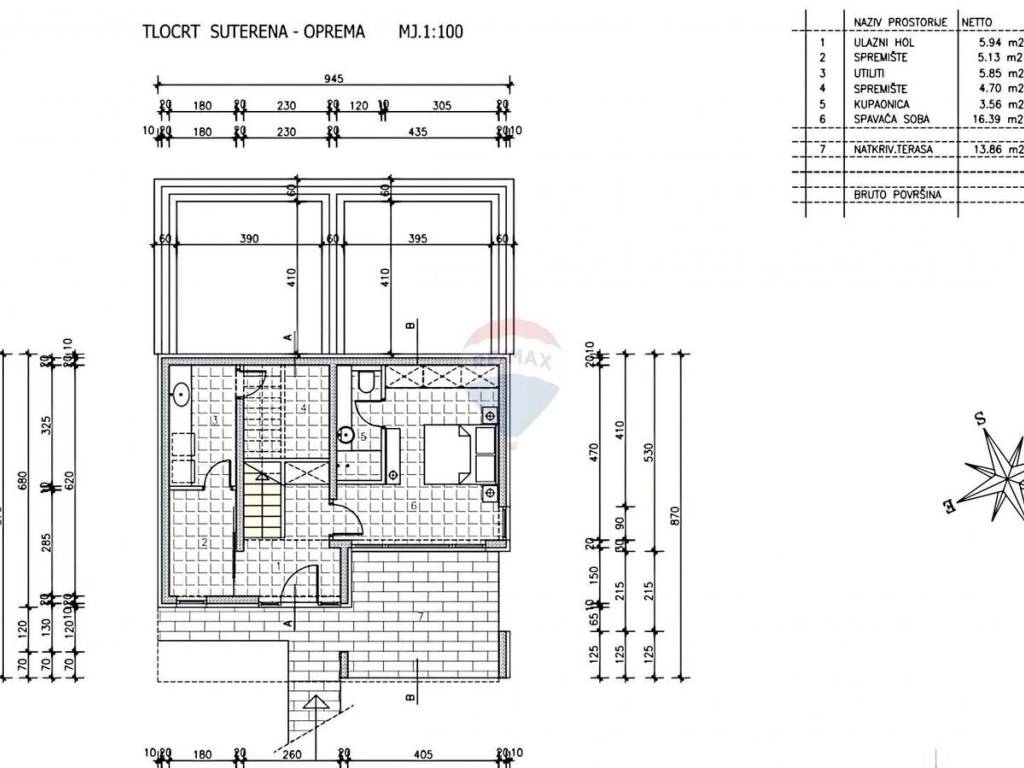 Basement (48.50 m²) – Includes an entrance area, storage room, utility room, bathroom, bedroom, and a covered terrace.