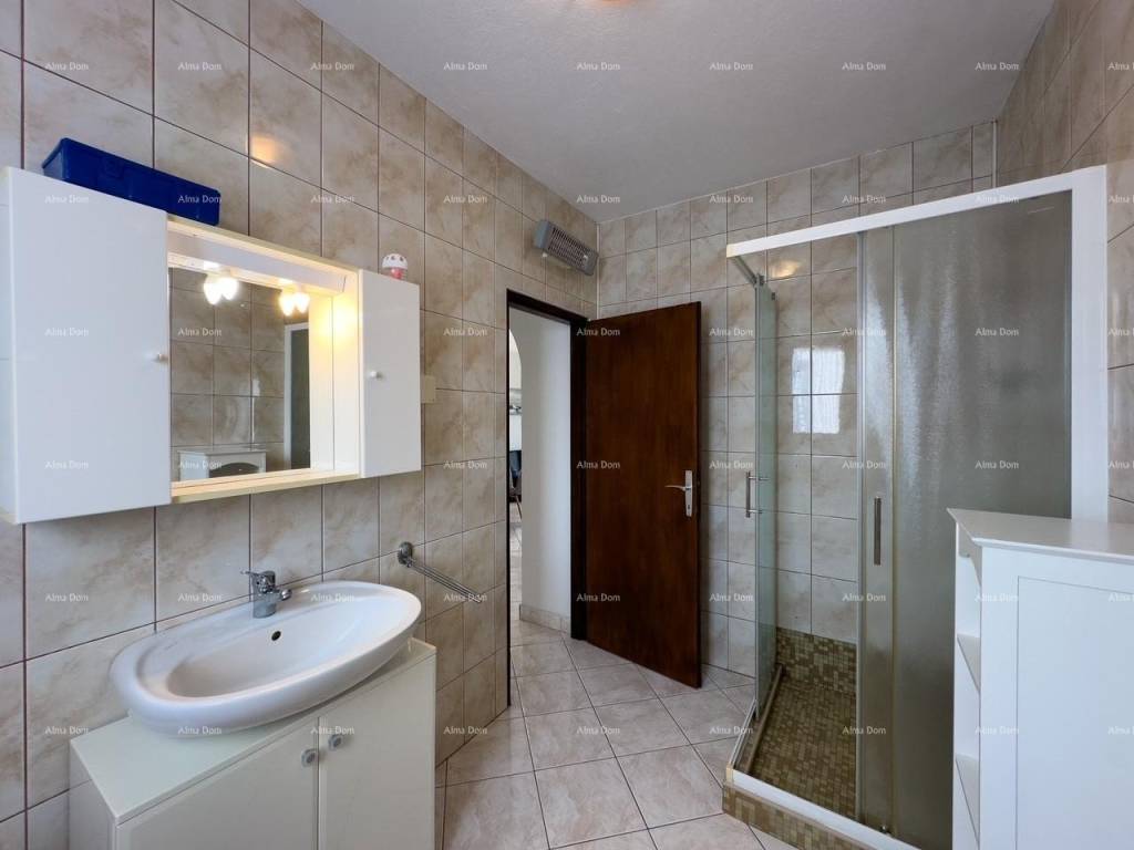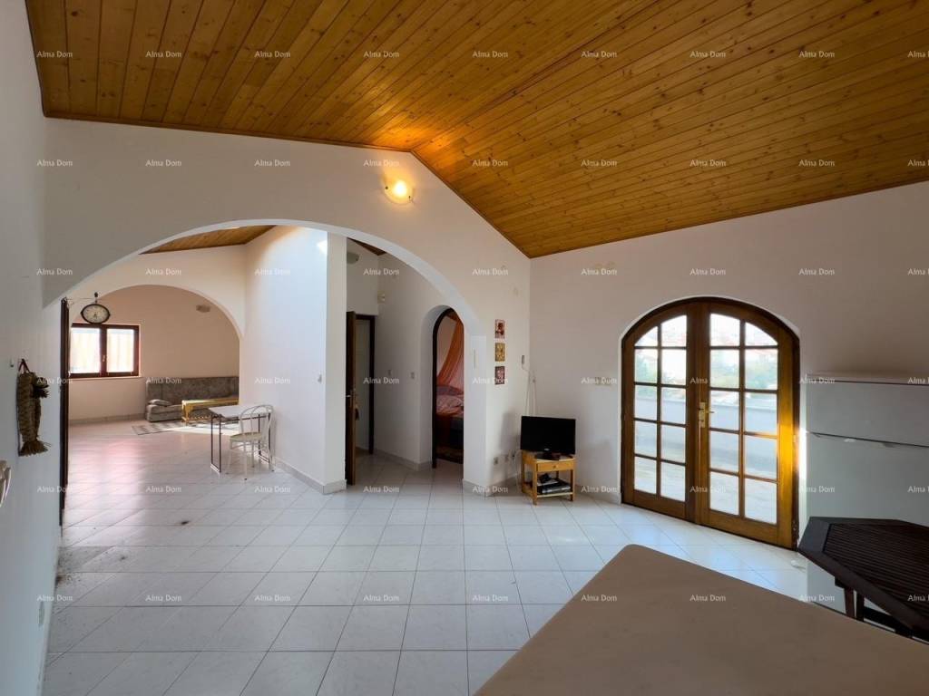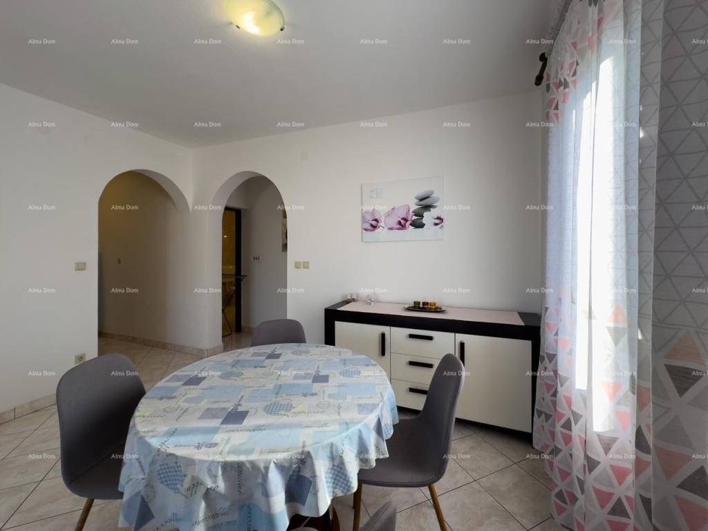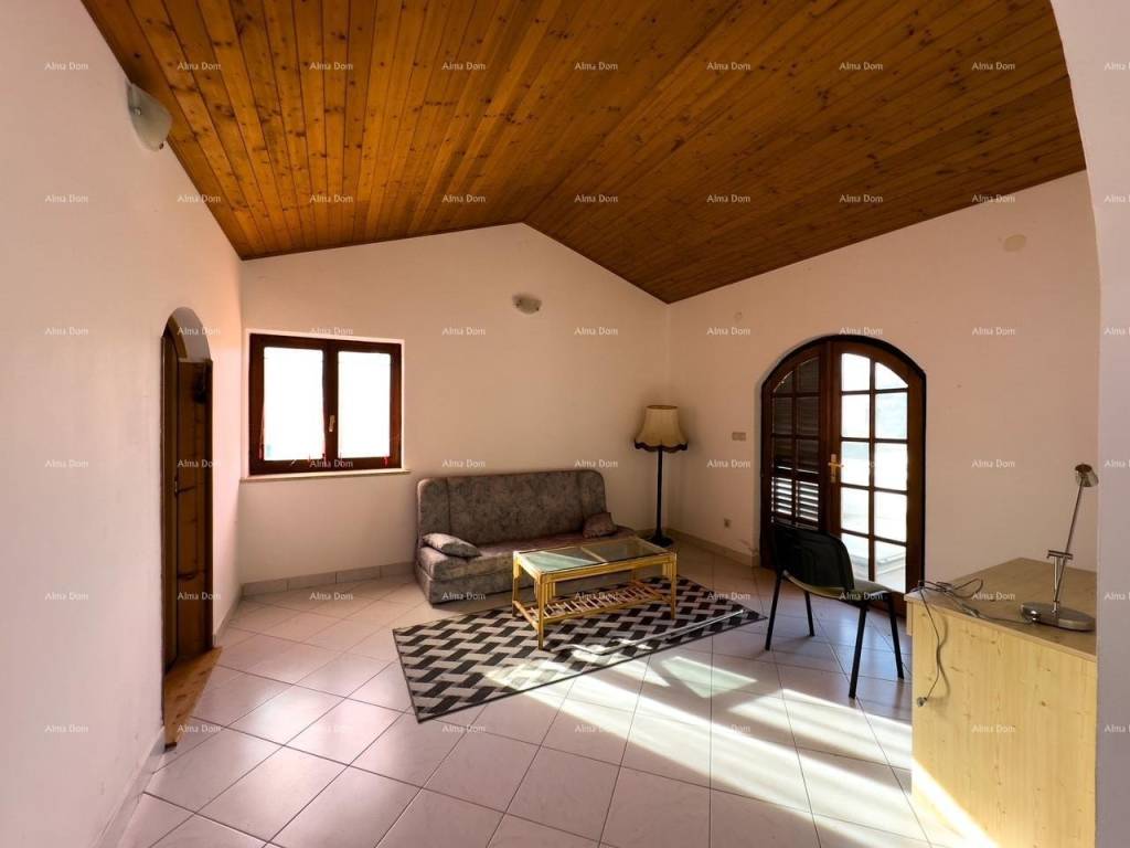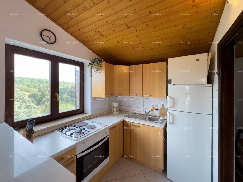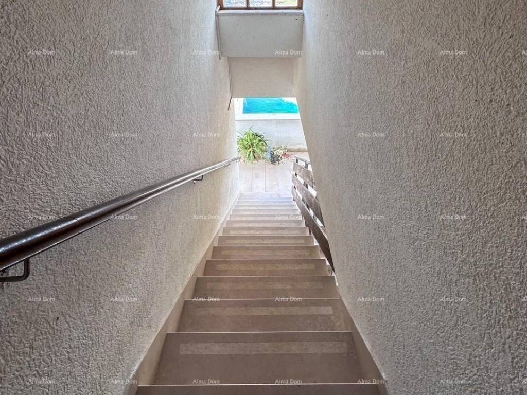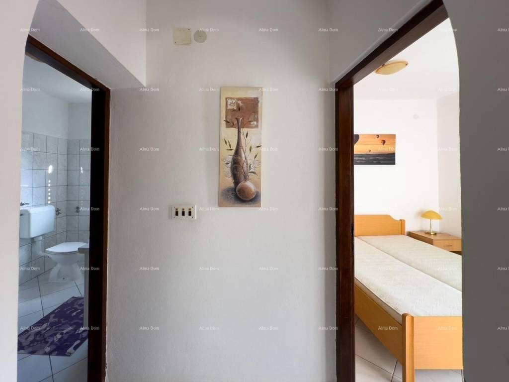The house consists of three apartments with two bedrooms each and four apartments with one bedroom each, spread across four levels (ground floor plus three floors). The garden is spacious and well-maintained, featuring a swimming pool, a large brick barbecue, five parking spaces, and a garage with a rooftop terrace where additional construction is possible. The top floor offers a sea view. Peaceful and quiet location.
