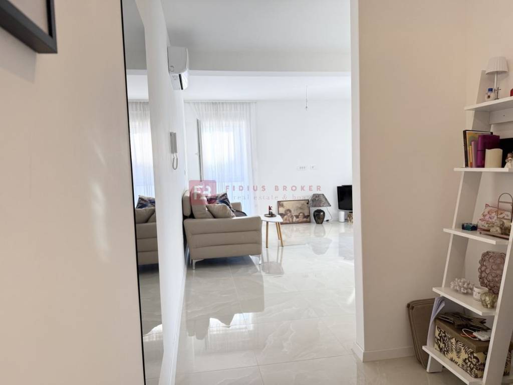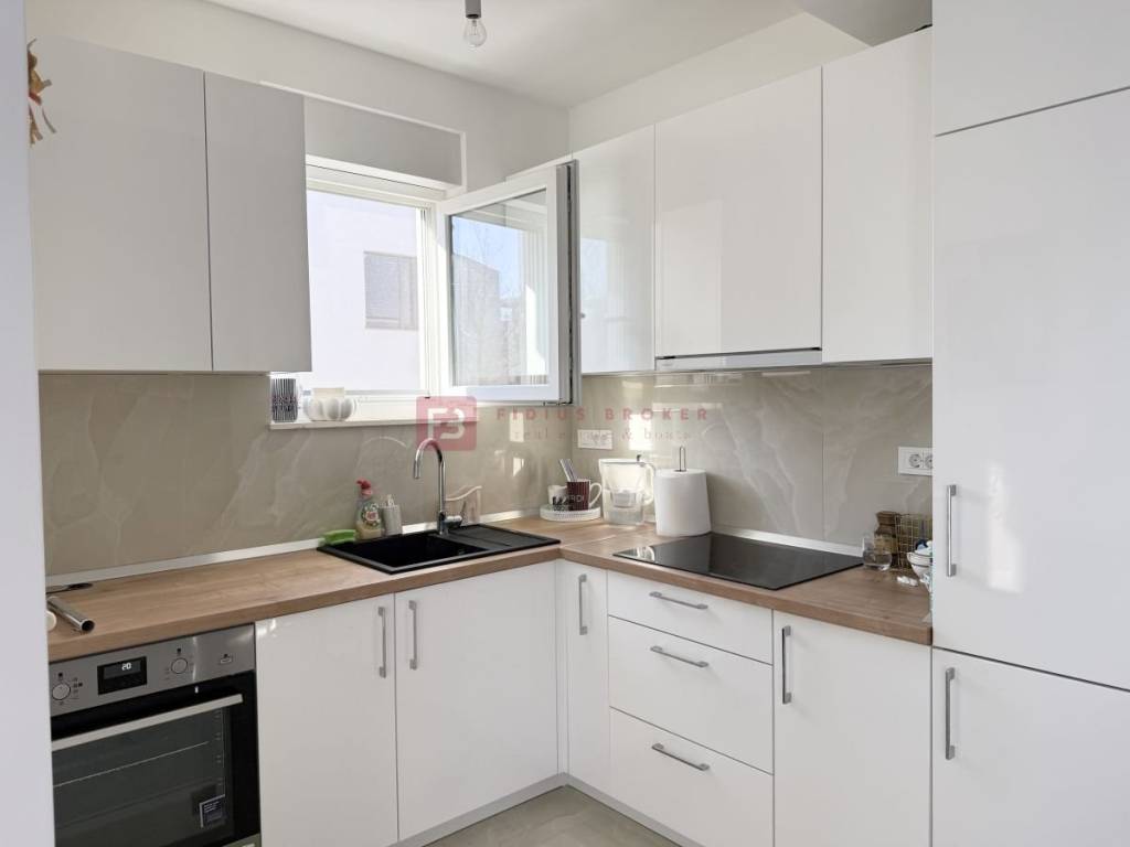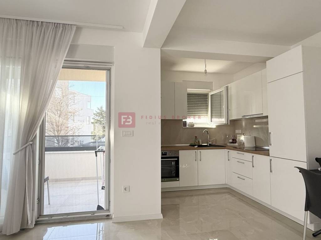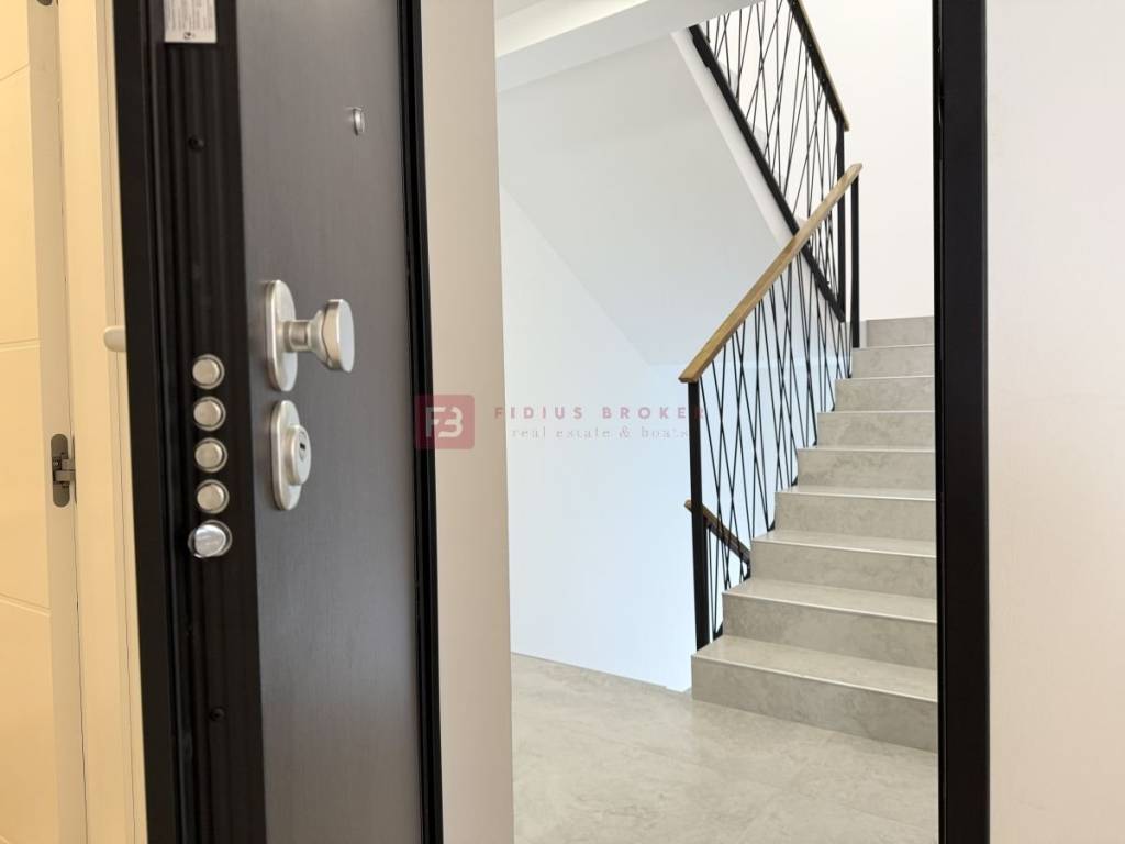 A new residential building with 8 modernly furnished apartments, built in 2024, is located in an excellent and quiet location at the end of a cul-de-sac, in the immediate vicinity of all important amenities — schools, kindergartens, the center (350 m), the city's waterfront and ACI marina (400 m) and a landscaped beach 850 m away. The equipment includes: Styrofoam facade 10 cm, burglar-proof and fire-proof entrance doors, PVC carpentry, aluminum blinds with electric lifts, mosquito nets, high-quality ceramic tiles in a beige shade, high-quality laminate in the bedrooms, modern bathroom fixtures, air conditioning in the living room and bedrooms, electric underfloor heating in the bathroom, equipped kitchen made to measure. An additional advantage is that the building is connected to the city sewer system.