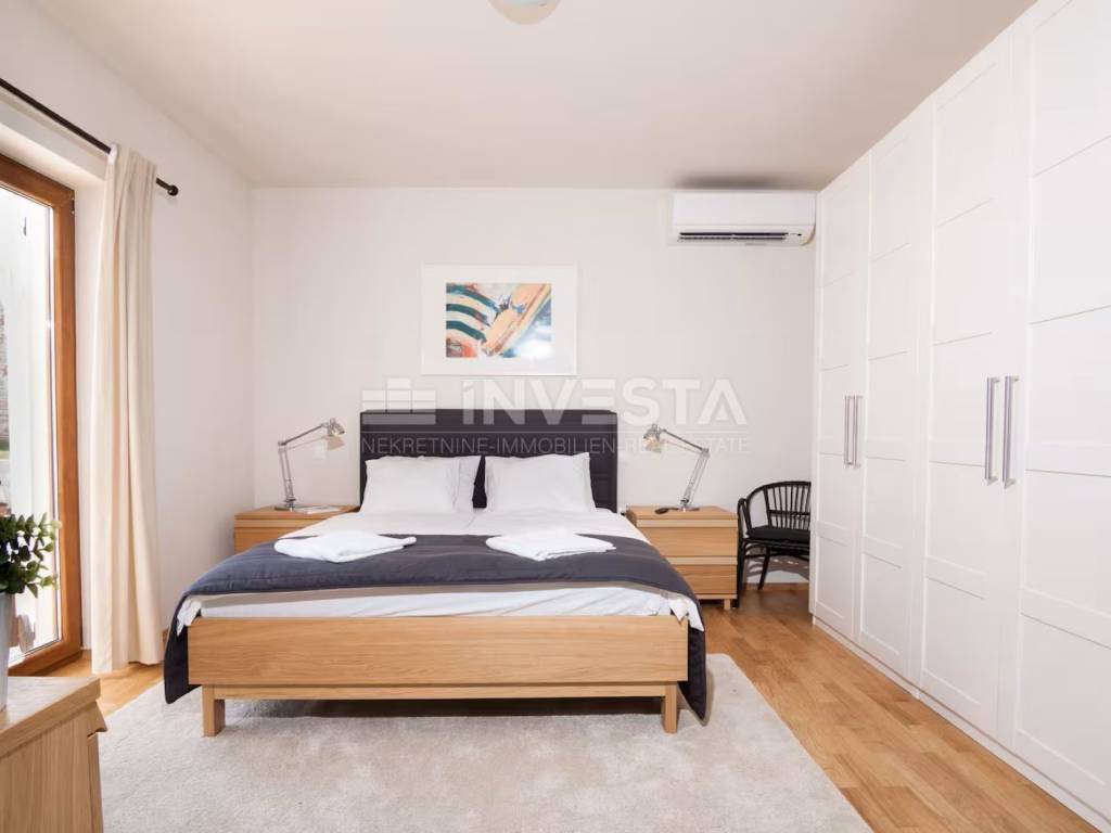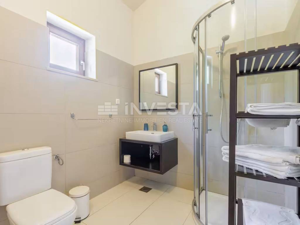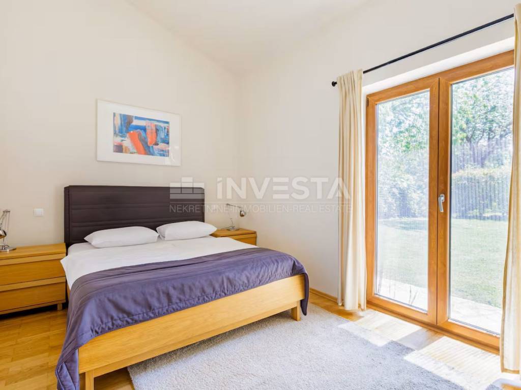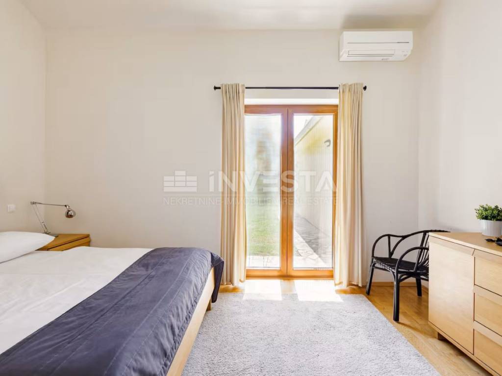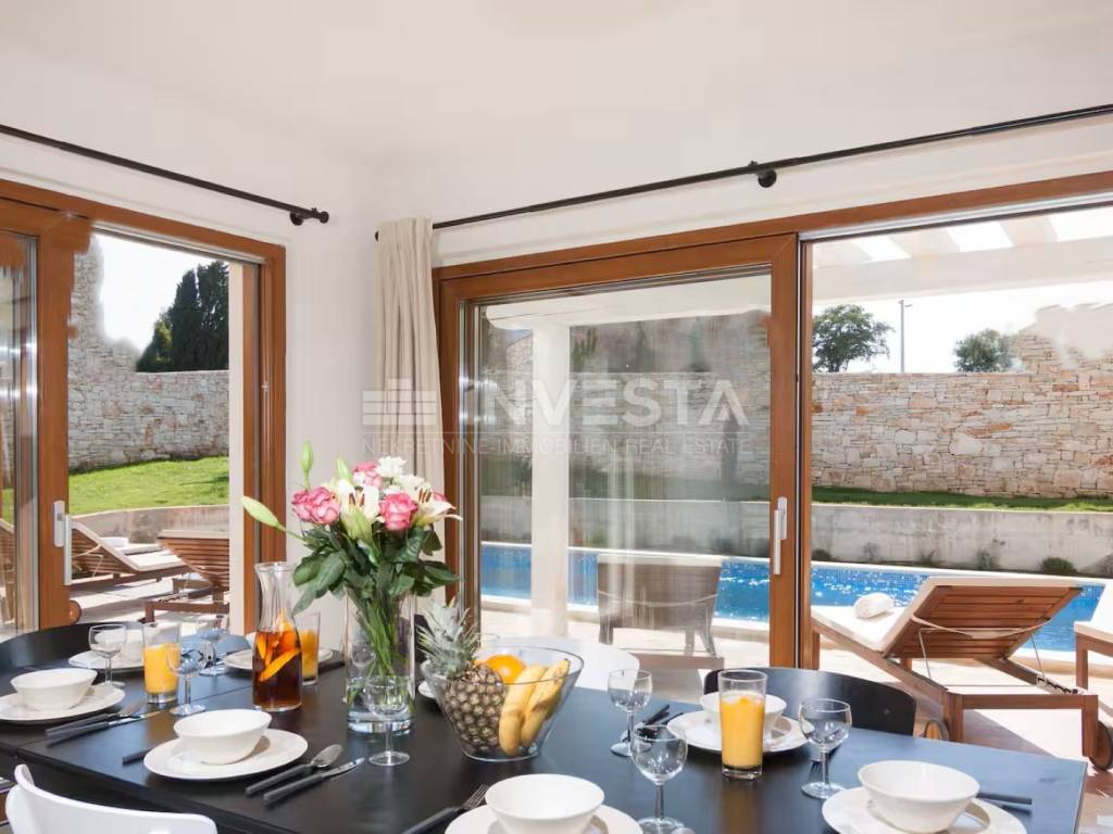 We present for sale a beautiful rustic villa located in a peaceful setting in a small village near the municipality of Barban, only 12 km from the sea and beaches. Surrounded by lush greenery, this charming villa with a total living area of 180 m² is situated on a beautifully landscaped plot of 690 m².