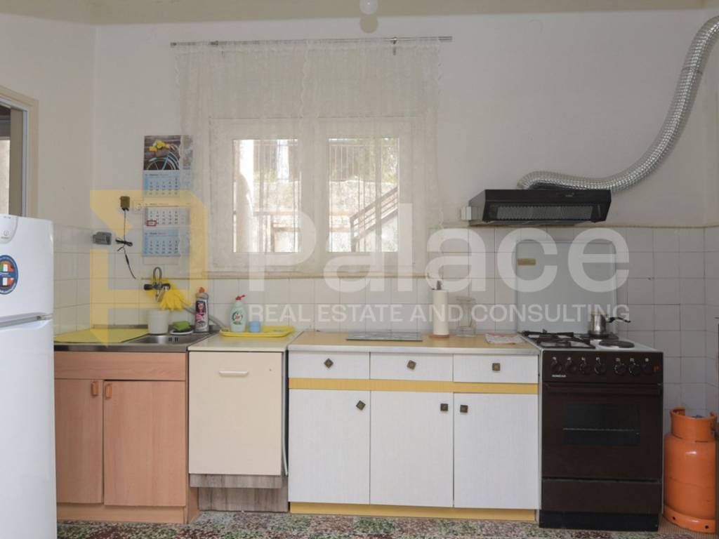 On the first floor of the house, an apartment with a living area of 95 m2 is being sold. It consists of a large hallway, three bedrooms, one with a double bed, a toilet, a bathroom, a kitchen and dining area, and a separate living room. The main bedroom and the living room have access to a terrace of 15.95 m2 offering views of the entire city. Due to its position, most of the apartment is sunny throughout the day.