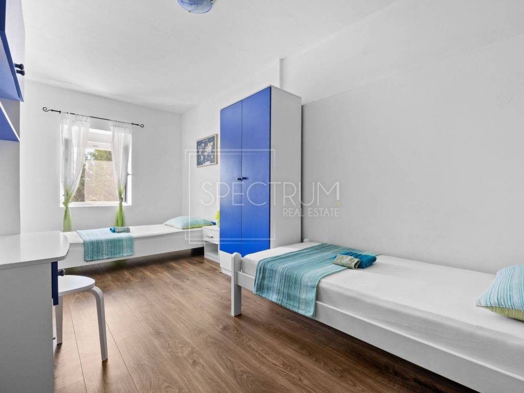 The house is located on a plot of 245 m2, of which 142 m2 is a landscaped and fenced garden. Within the garden there is a recently renovated swimming pool with a sunbathing area and an outdoor shower, ideal for enjoying the summer months. The rest of the garden is filled with landscaped lawns and trees, which gives the house additional privacy. There is a parking space next to the house.