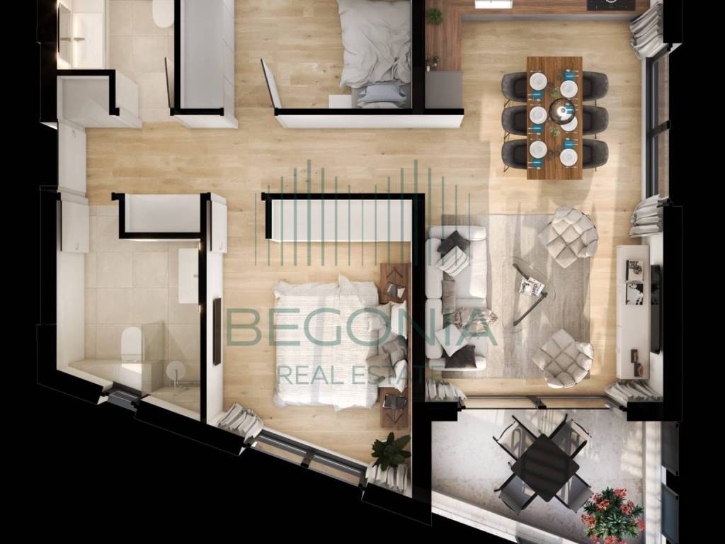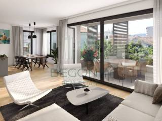 Stan se sastoji od dnevnog boravka s kuhinjom i blagovaonicom otvorenog koncepta, tri odvojene spavaće sobe, kupaonice te dodatnih pratećih prostorija. Uz stan dolazi zatvorena, privatna garaža (nije garažno parkirno mjesto) te dodatno jedno vanjsko parkirno mjesto. Zgrada je opremljena liftom, a stan nudi visoku razinu komfora zahvaljujući podnom grijanju i klima uređaju, što osigurava ugodnu temperaturu tijekom cijele godine i niske režijske troškove.