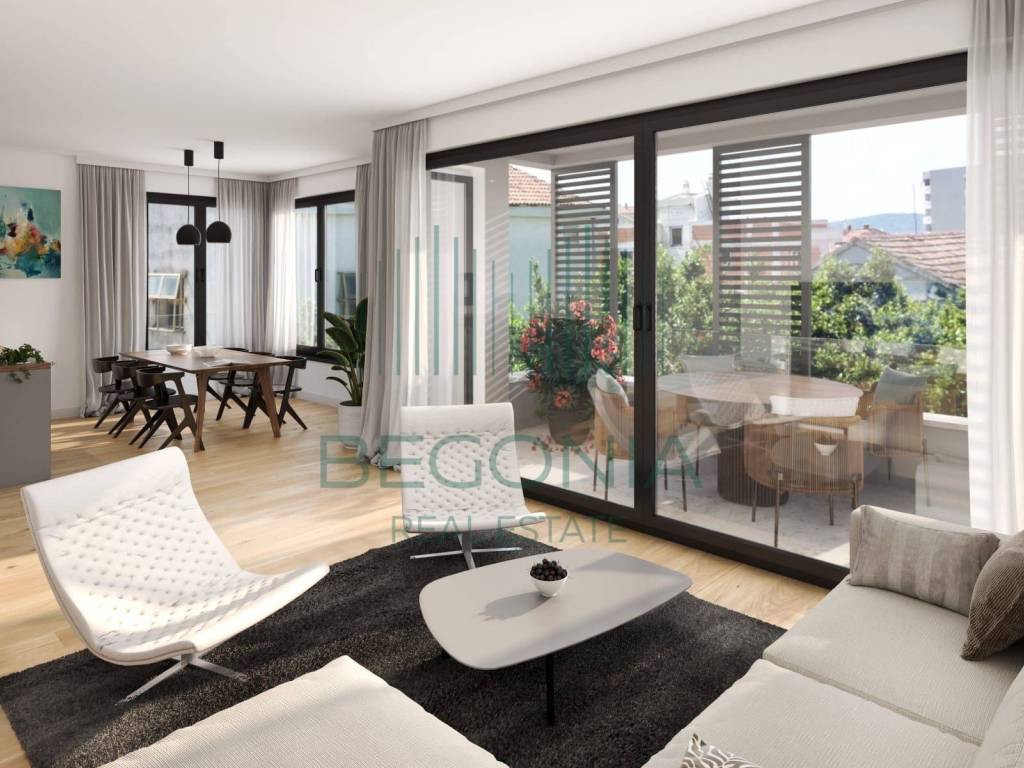NOVOGRADNJA TROSOBAN STAN S VELIKIM VRTOM, GARAŽOM, PARKINGOM I LIFTOM U ponudi je prostran i funkcionalan TROSOBAN stan u kvalitetnoj novogradnji, idealan za obiteljski život i mirno stanovanje.