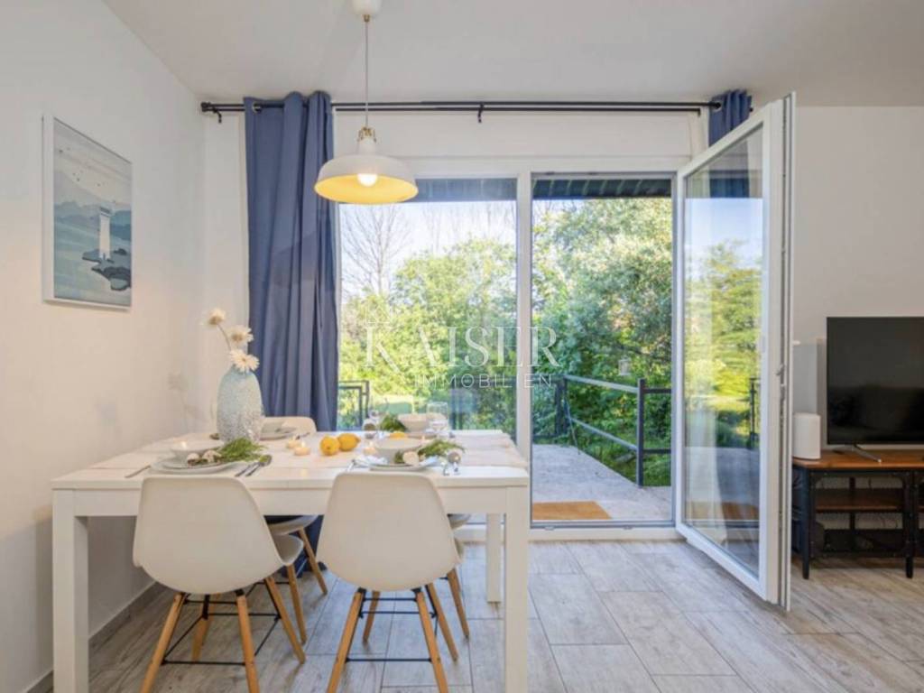 The interior layout includes two comfortable bedrooms, a bright living room, a functional kitchen and a bathroom with a toilet. The space is carefully decorated and fully equipped, ready for moving in or tourist rental. Two spacious terraces, one of which is covered and equipped with a large barbecue, provide a special value, creating an ideal atmosphere for outdoor living and socializing throughout the year.
