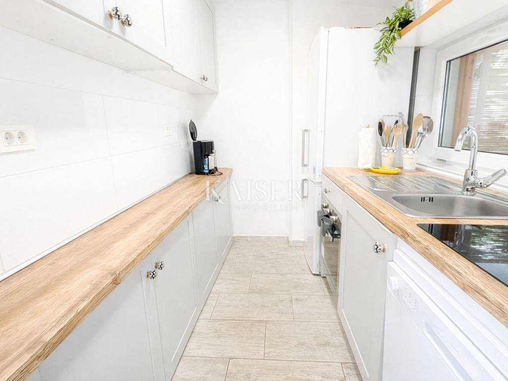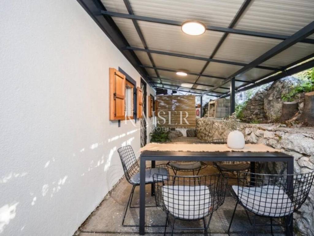 Kaiser Immobilien presents a unique opportunity to purchase a fully renovated and furnished house located in the very center of Brseč, in an extremely sought-after and rarely available location. Although it is literally a hundred meters walk from shops, cafes, restaurants and a bus station, the property is excellently positioned to ensure privacy and its own garden, which is a real rarity in the very center of the town.