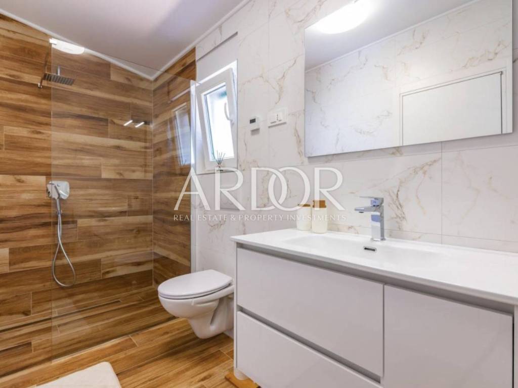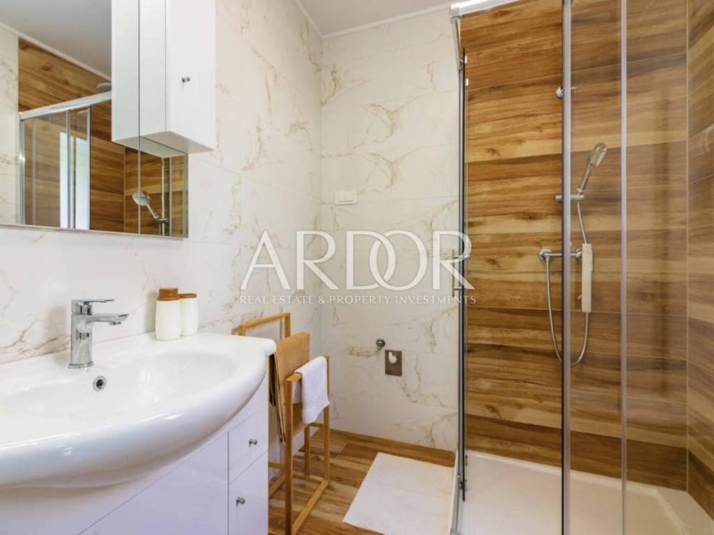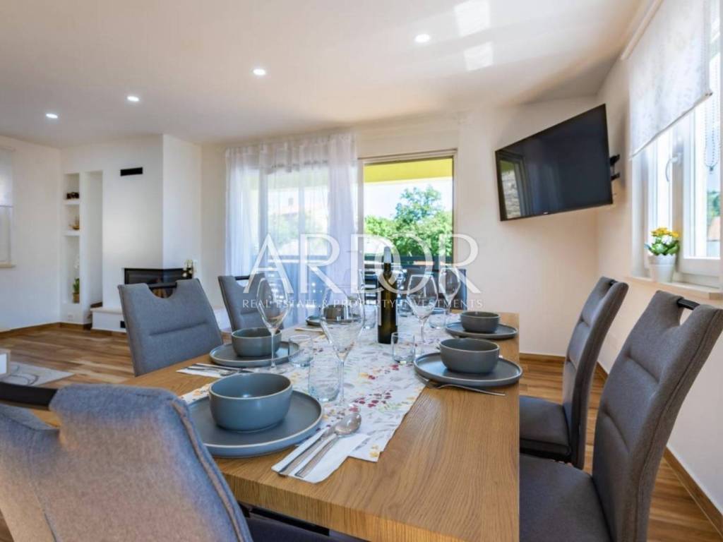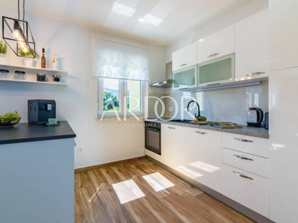 In the quiet area of Mučići, just a 10-minute drive from Opatija, a modernly furnished apartment in a house with a total area of 125 m² is available for long-term rent. The apartment offers complete privacy and peace, free from traffic noise, making it an ideal choice for families or anyone seeking a high-quality and comfortable lifestyle near the sea.