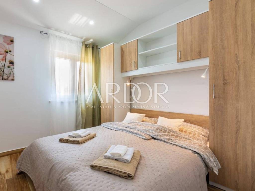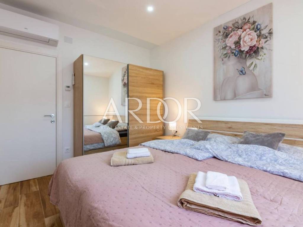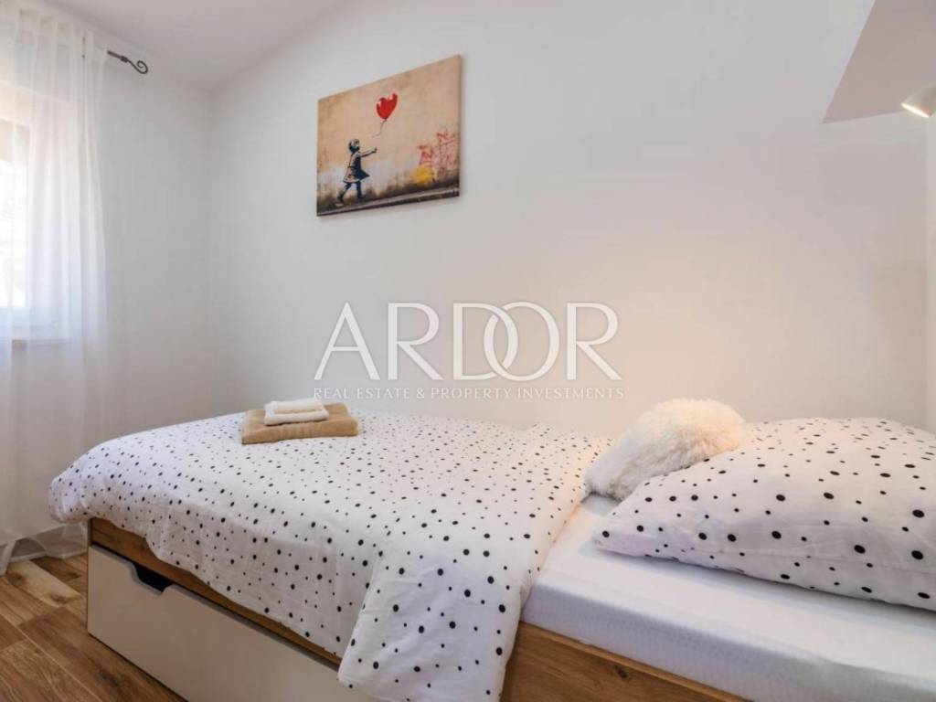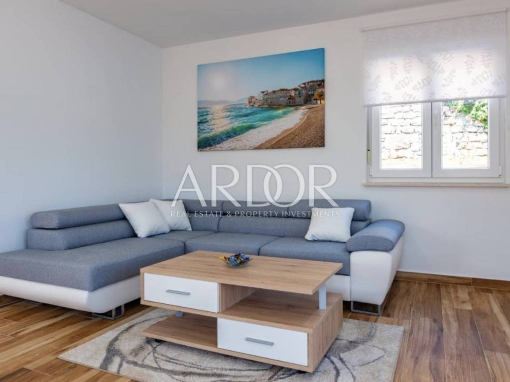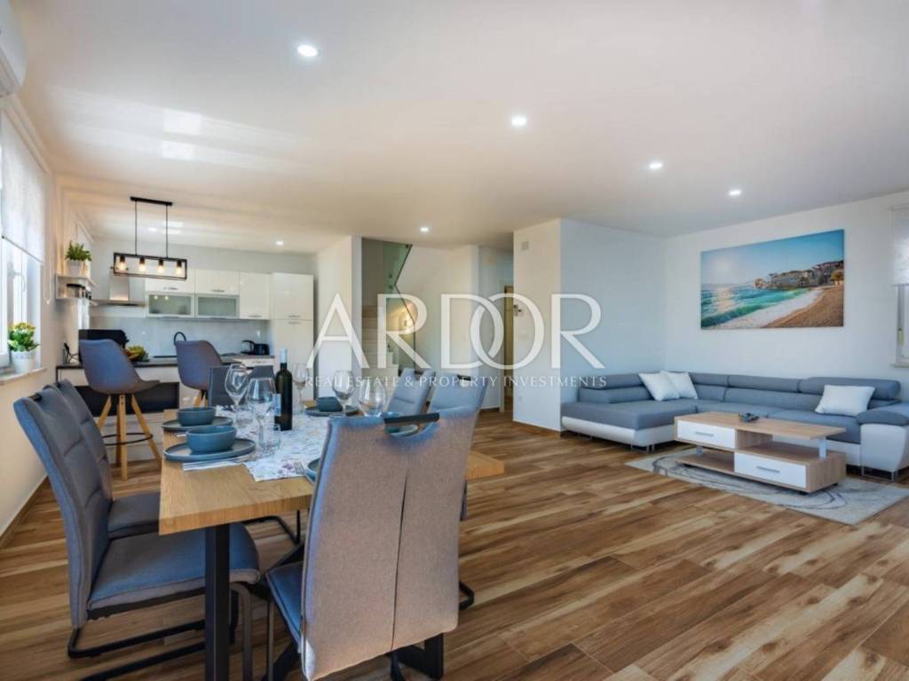 In the quiet area of Mučići, just a 10-minute drive from Opatija, a modernly furnished apartment in a house with a total area of 125 m² is available for long-term rent. The apartment offers complete privacy and peace, free from traffic noise, making it an ideal choice for families or anyone seeking a high-quality and comfortable lifestyle near the sea.