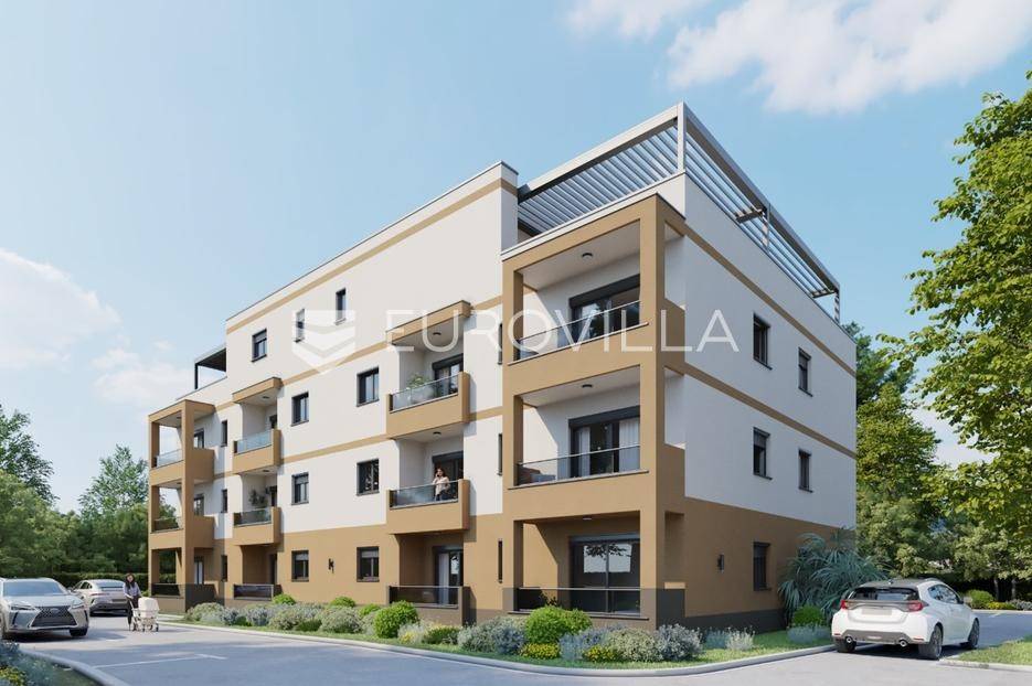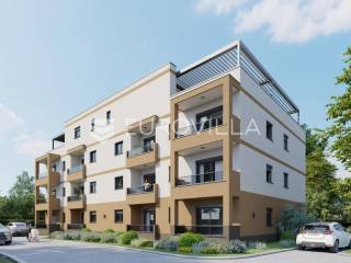 Istra, Tar, penthouse 191m2 na 3. katu s tri spavaće sobe, dvije terase ukupne površine od 78m2 te liftom koji vodi direktno u stan u stambenoj zgradi s 13 stanova.Penthouse S13 zatvorene površine 171,45m2 koji se prostire kroz cijelu etažu sastoji se od ulaznog dijela koji vodi u prostrani open space koncept dnevnog boravka, blagovaone i kuhinje površine 70m2 s dva izlaza na veliku terasu. U tom dijelu stana nalazi se još kupaona te manja ostava. Na dugoj strani penthousa nalazi se hodnik koji odvaja 3 spavaće sobe, od kojih dvije imaju ensuite kupaonu te gostinjska kupaona. Sve tri spavaće sobe imaju izlaz na prostranu terasu s koje će se pružati pogled na more i okolno zelenilo.Stanu pripada dva vanjska parkirna mjesta. Stan će biti opremljen s podnim električnim grijanjem te klima uređajima. Stan će biti obložen keramikom te ugrađenom visokokvalitetnom VEKA PVC stolarijom s troslojnim staklom i električnim roletama.Tar je malo mjesto na svega 20 minute vožnje do Poreča i 10 minuta vožnje do plaža prepoznatljiv po maslinovom ulju i predivnim vidikovcima s kojih se pruža predivan pogled na more te u lijepim danima čak Veneciju i Alpe.Za više informacija stojimo vam na raspolaganju... Više na eurovilla.hr, ID: 165850