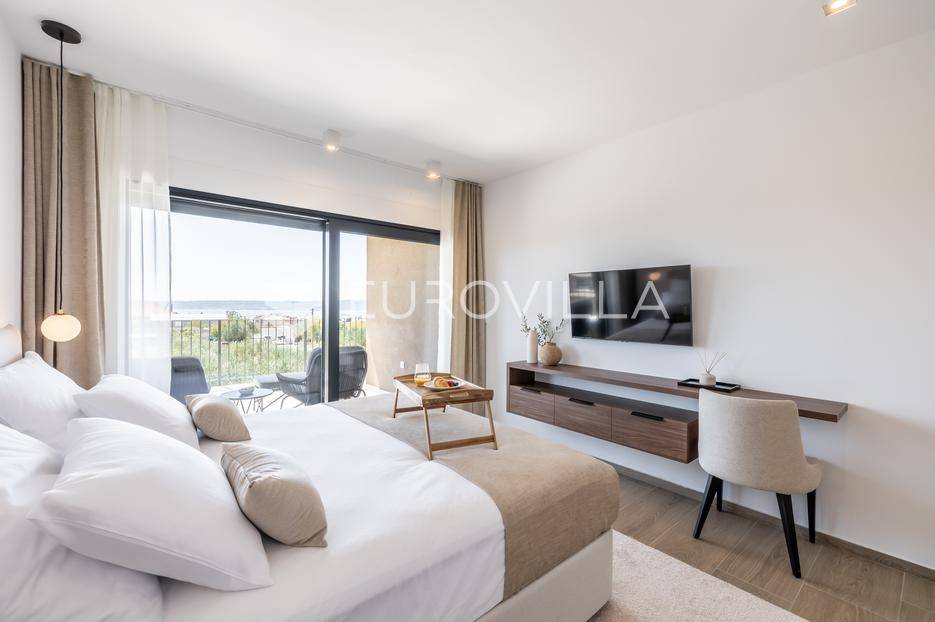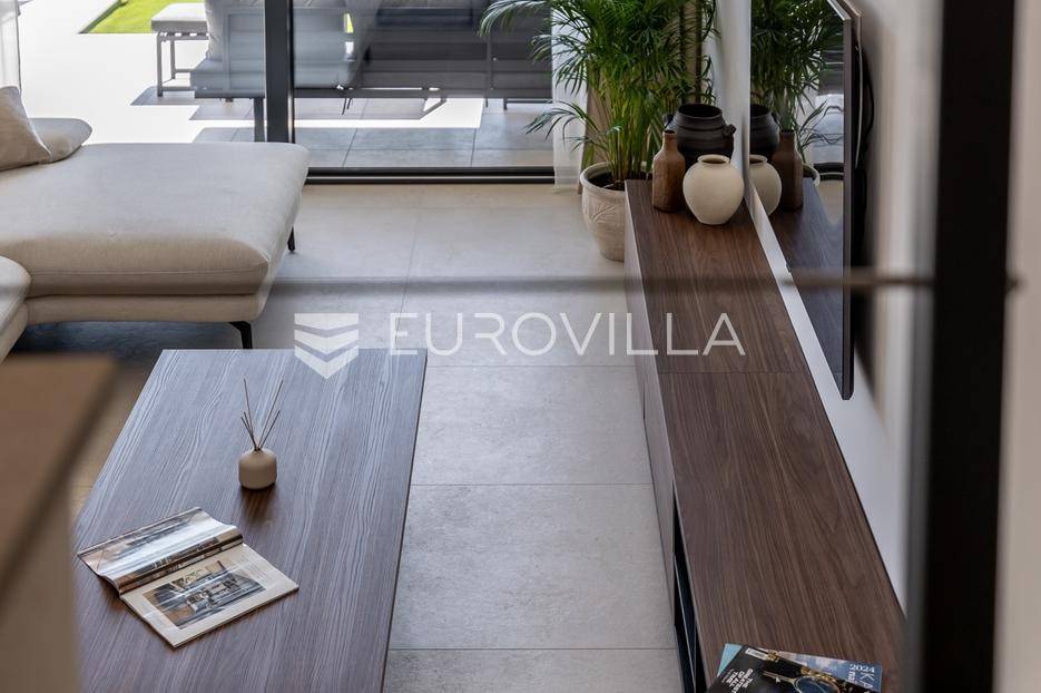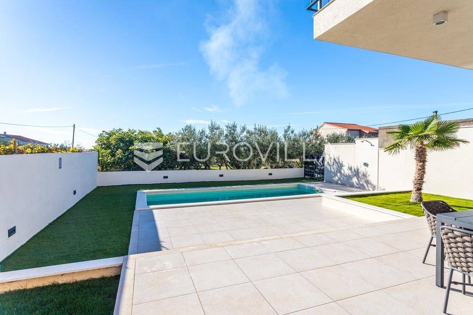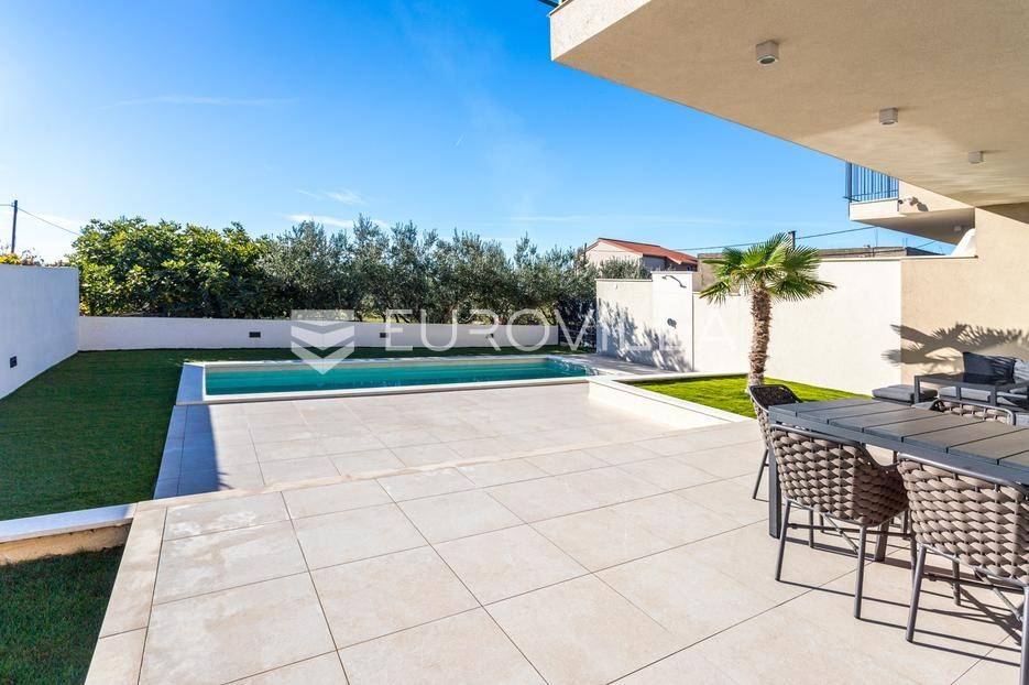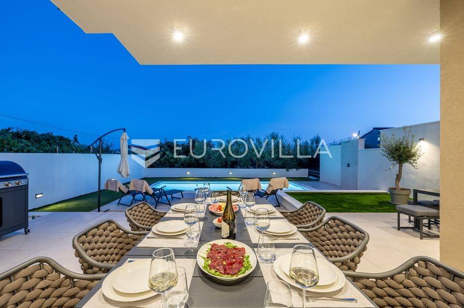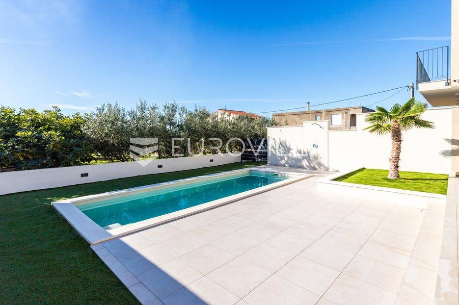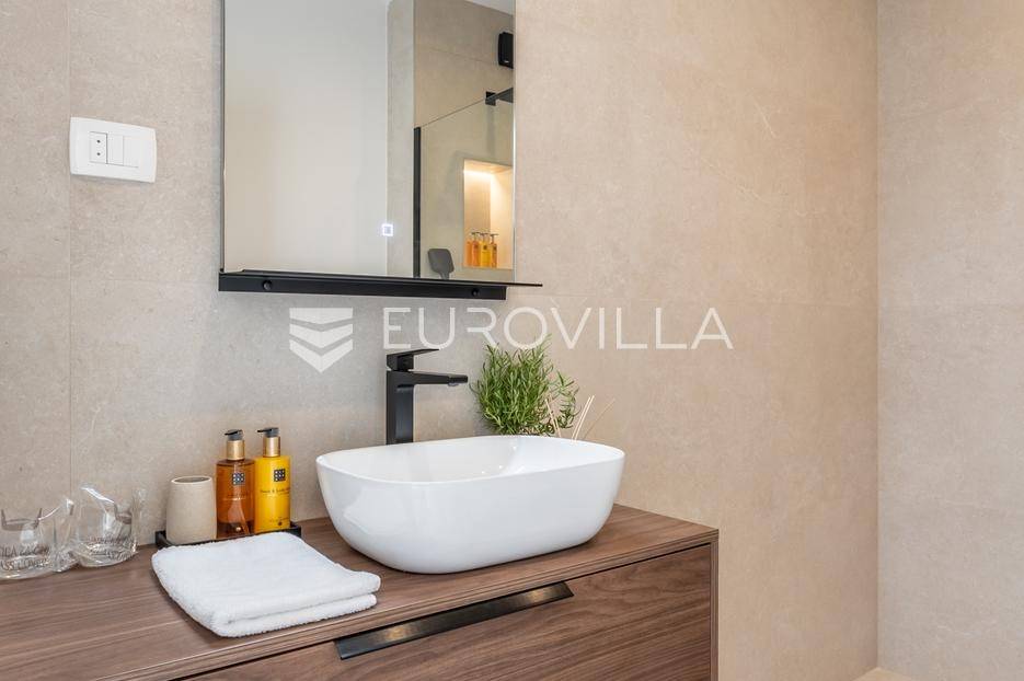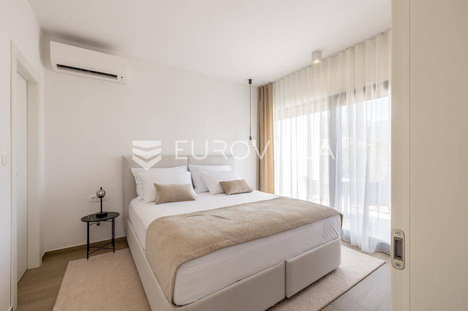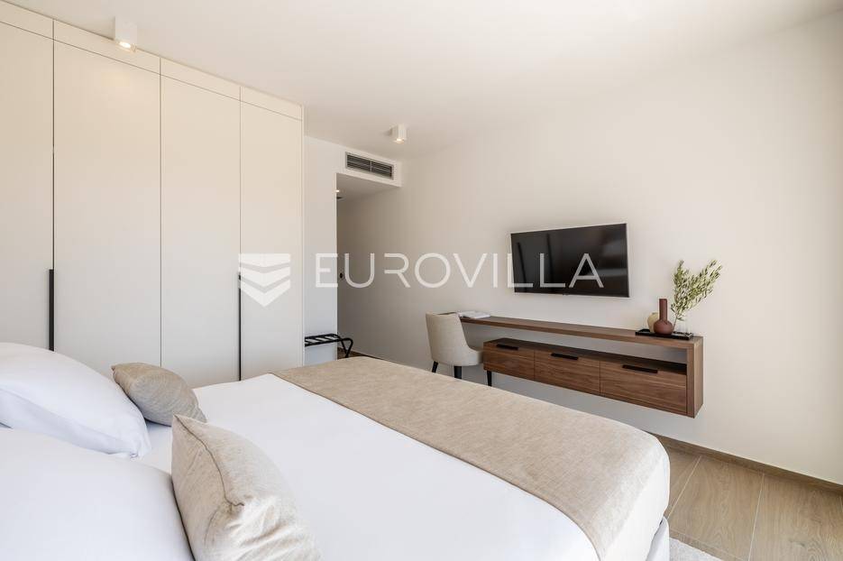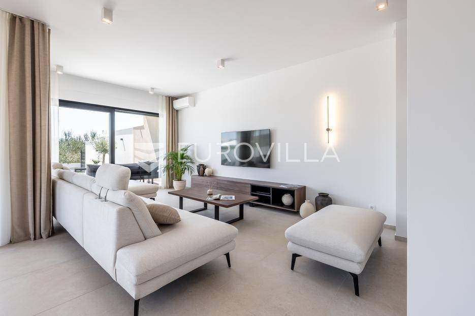 Kaštel Stari, moderna tek dovršena vila s prekrasnim pogledom na more dostupna je za dugoročan najam.Vila površine 274 m2 smještena je na mirnoj lokaciji, ali u blizini svih sadržaja potrebnih za kvalitetan život. Sastoji se od prizemlje gdje je smješten dnevni dio s izlazom na terasu i vrt s grijanim bazenom i sunčalištem. Na katu su raspoređene tri spavaće sobe, četiri kupaonice i vanjska terasa s panoramskim pogledom na more i planine.Vila je kompletno namještena i opremljena podnim grijanjem u kupaonicama, videonadzorom, televizorima u svakoj sobi…Režije nisu uključene u cijenu.Više informacija na upit.... Više na eurovilla.hr, ID: 203028