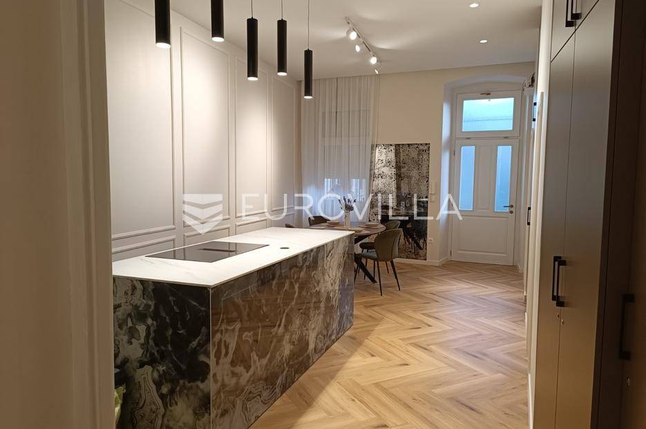Elegantan i potpuno renoviran trosoban stan koji oduševljava modernim dizajnom, kvalitetnim materijalima i iznimno ugodnim životnim ambijentom. Smješten je u jednoj od najpoželjnijih gradskih četvrti, u neposrednoj blizini svih sadržaja potrebnih za udoban život.Stan se sastoji od dvije moderno uređene spavaće sobe, prostranog i svijetlog dnevnog boravka uređenog u suvremenom stilu, te kuhinje s blagovaonicom koju dodatno naglašava luksuzni kuhinjski otok. Kupaonica i wc izvedeni su u modernim tonovima, s detaljima koji podižu ukupni dojam profinjenosti. U interijeru prevladavaju neutralni tonovi, štukature i dobro osmišljena rasvjeta, što stvara profinjen i topao ambijent.Stan je idealan za sve koji traže moderan, luksuzan i funkcionalan dom u centru grada, bez dodatnih ulaganja i odmah spreman za useljenje.Za sva dodatna pitanja stojimo na raspolaganju.... Više na eurovilla.hr, ID: 241757