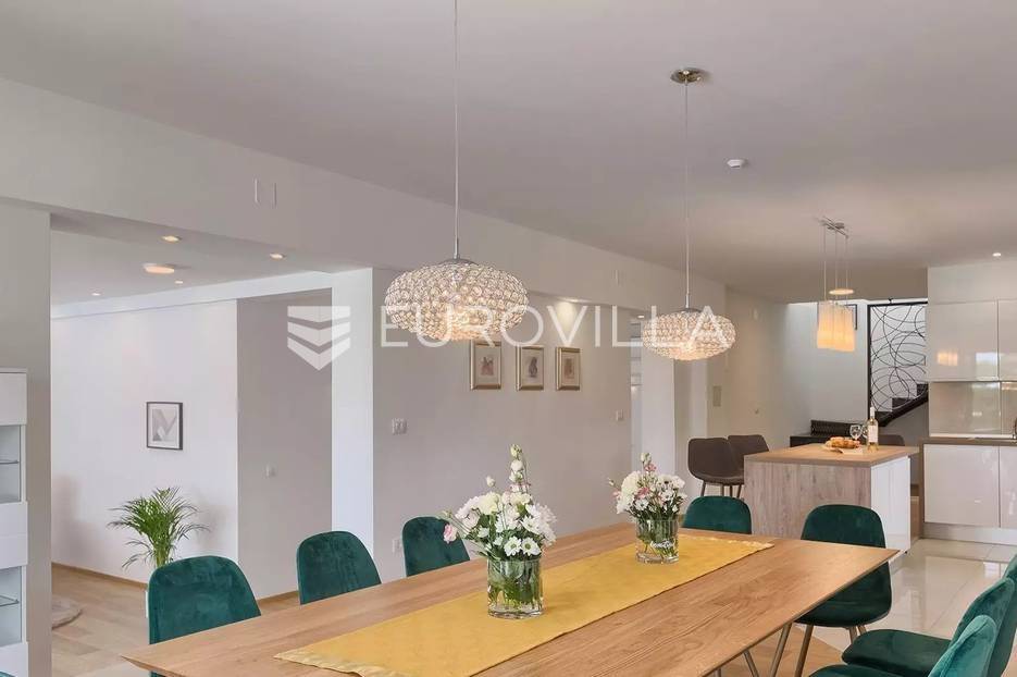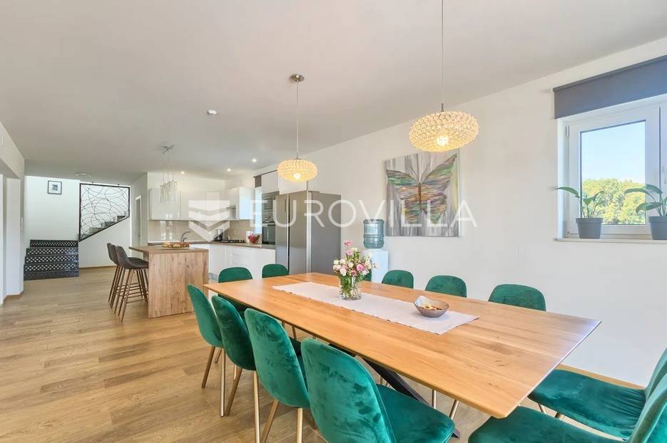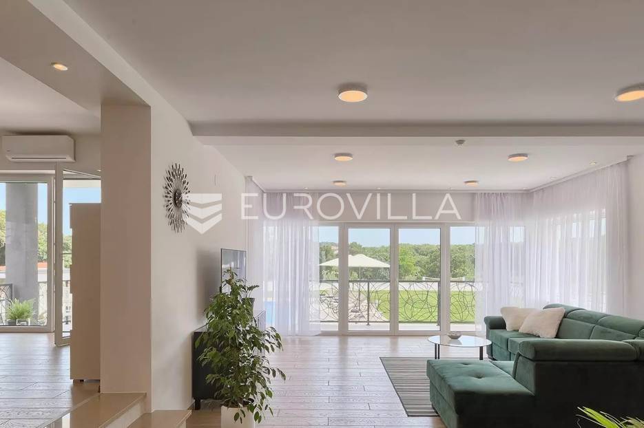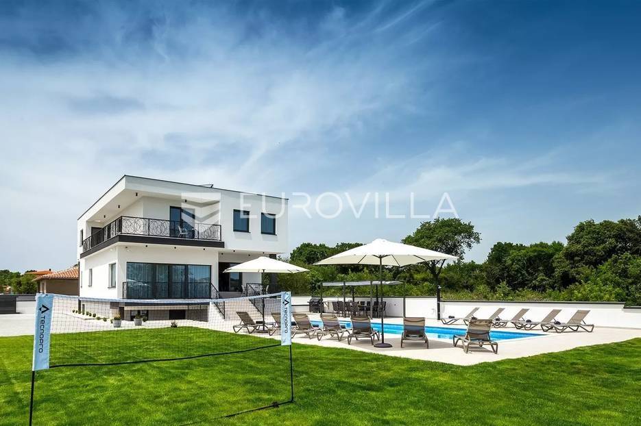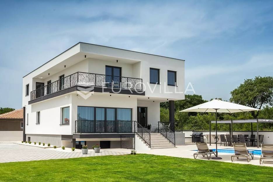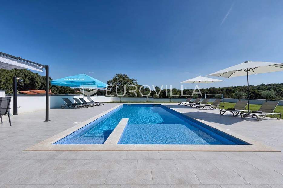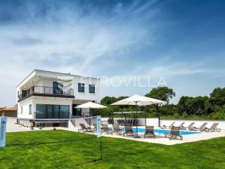 Upravo u Štinjanu smještena je ova predivna visokokvalitetna, moderna, samoodrživa kuća s bazenom bruto površine 570 m² i okućnicom 1758 m². Kuća se sastoji od tri etaže. Prva etaža jeste suteren koji se nalazi duž cijele površine kuće i budućem vlasniku ostavlja priliku da isti dio kuće iskoristi za namjenu konobe, teretane, wellnessa, igraonice itd. U prizemlju koje je 190 m² nalazi se veliki, osvijetljeni dnevni boravak s izlazom na terasu i vrt kuće, kuhinja rađena po mjeri i opremljena visokokvalitetnim aparatima koji omogućuju kvalitetno i ekonomično korištenje, prostrani prostor za objed, prostrana spavaća soba i kupatilo. Na prvom katu se nalaze četiri osvijetljene i prostrane spavaće sobe od kojih je svaka opremljena sa zasebnim kupatilom, televizijom, kliznim ormarom, jedinicom klima uređaja i svaka soba ima izlaz na komfornu, zajedničku terasu.Na predivnoj, zelenoj okućnici nalazi se bazen veličine 64 m², veliko sunčalište s vanjskim tušem, ručno rađeni kameni kamin pored kojeg se nalazi prostrani natkriveni prostor za objed i uživanje u predivnom okruženju.Villa posjeduje vlastito snabdijevanje slatkom vodom koja se kroz višestruke filtere pročišćava te se skladišti u velike kotlove i koristi za okućnicu i kućanstvo. Osim vlastitog snabdijevanja vodom, na ravnom krovu Ville nalaze se solarni paneli. Upravo ove dvije činjenice daju nekretnini osim svog modernog dizajna, prostranosti i kvaliteti i samoodrživu, ekonomičnu i ekološki zelenu stranu.Uz navedenu Villu ne prodaje se samo luksuzna, samoodrživa nekretnina spremna za useljenje već i sama lokacija iste, koja se nalazi u jednom mirnom okruženju, a opet blizu mora i svih popratnih sadržaja za život, što budućem kupcu daje mogućnost uživanja u istoj u smislu obiteljskog života, a isto tako i bavljenja ugostiteljskom djelatnošću iznajmljivanja te brzom povratu uloženih sredstava.Sve ostale informacije na upit.... Više na eurovilla.hr, ID: 301430