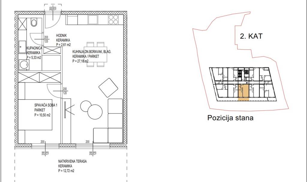 U mirnom i atraktivnom dijelu naselja Vruljica smješten je ovaj funkcionalno projektiran jednosoban stan u modernoj novogradnji s liftom i garažom.Stan se nalazi na 3. katu zgrade. Zatvoreni stambeni dio iznosi 43,38 m², dok lođa ima površinu 3,08 m², što ukupno čini 46,46 m² korisne površine.Obračunska površina prema etažnom elaboratu iznosi 45,69 m².Raspored i površine prostorija:Dnevni boravak, kuhinja i blagovaonica: 24,84 m²Spavaća soba: 10,13 m²Kupaonica: 6,29 m²Hodnik: 2,12 m²Zgrada se gradi prema visokim standardima moderne novogradnje u energetskom razredu A+, s sustavom grijanja i hlađenja, podnim grijanjem, aluminijskom stolarijom s troslojnim staklima, električnim roletama i komarnicima te visokom razinom završne obrade.Stanu pripada jedno vanjsko parkirno mjesto i spremište, uključeno u oglašenu cijenu.Očekivani završetak gradnje: ljeto 2026. godine. Projekt ima pravomoćnu građevinsku dozvolu.Za prezentaciju projekta i dodatne informacije stojimo na raspolaganju.... Više na eurovilla.hr, ID: 371710