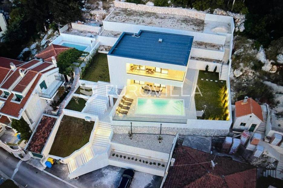 Ploče, Rogotin, moderna urbana vila s bazenom i pogledom na moreU mirnom dijelu Ploča, u naselju Rogotin, prodaje se luksuzna urbana vila ukupne bruto površine 311 m², smještena na prostranom zemljištu površine 1.200 m². Nekretnina je moderno projektirana, s vrhunskim sadržajima i prekrasnim pogledom na more i zaljev.Osnovne informacije:Ukupna površina vile iznosi 311 m² bruto korisne površine raspoređenih na tri etaže. Na zemljištu se nalazi i vanjski parking te bazen koji pruža dodatni užitak i privatnost.Tlocrtni raspored:Suteren (60 m² neto korisne površine) sastoji se od ulaznog prostora, strojarnice i unutarnjeg stubišta.Prizemlje (156 m² neto korisne površine) obuhvaća kuhinju s blagovaonicom, prostrani dnevni boravak, jednu spavaću sobu, kupaonicu, zaseban WC, hodnik, unutarnje stubište te natkrivenu i nenatkrivenu terasu. Iz prizemlja se izlazi na bazen, idealan za opuštanje u toplim danima.Prvi kat (101 m² neto korisne površine) sastoji se od tri spavaće sobe, dvije kupaonice, praonice, hodnika i natkrivenog balkona s otvorenim pogledom na more i okolni krajolik.Vila je idealna kao obiteljska kuća za stanovanje, odmor ili kao investicija za turistički najam. Lokacija pruža mir i privatnost, a ujedno je dobro povezana s prometnicama i gradskim sadržajima.Za sve dodatne informacije ili dogovor oko razgleda, slobodno nas kontaktirajte.... Više na eurovilla.hr, ID: 411651