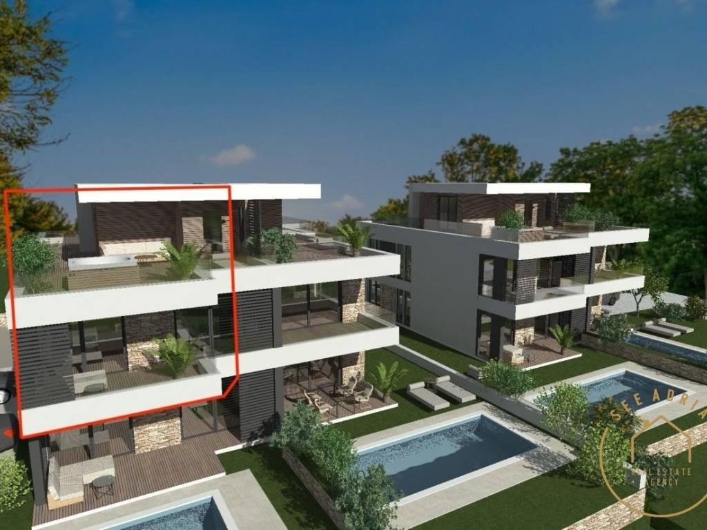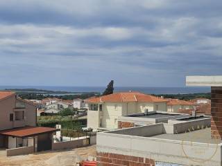 offers a beautiful view of the sea. On the roof terrace there is a toilet and a space for a sauna and jacuzzi.