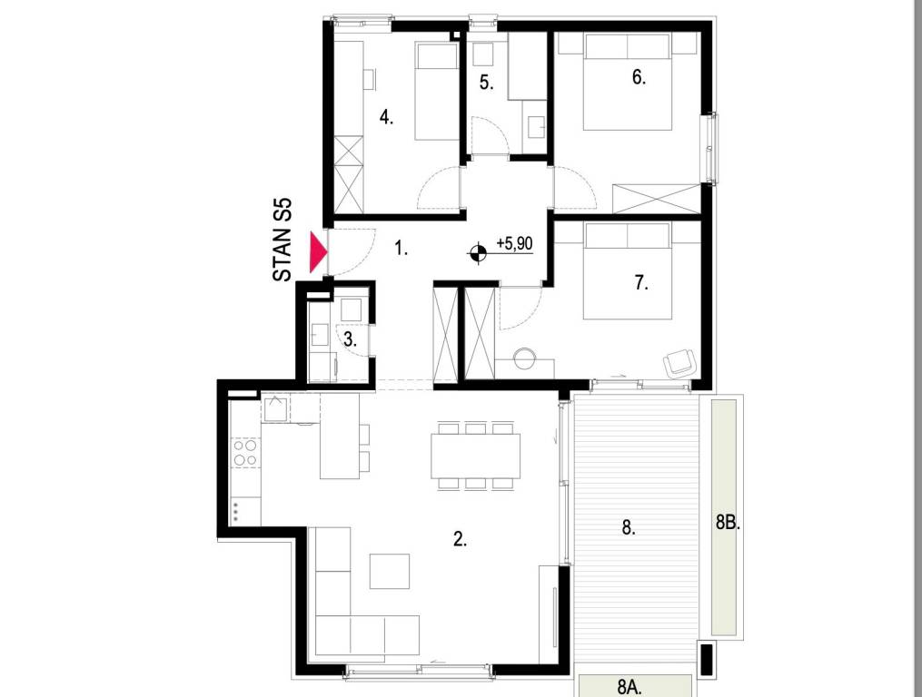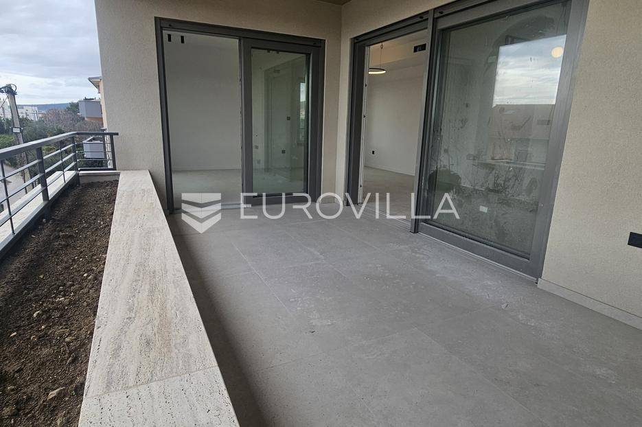 Kaštela, komforan, luksuzan trosoban stan u novogradnji, smješten na drugom katu urbane zgrade s liftom i podzemnom garažom.Sastoji se od moderne kuhinje visokog standarda s blagovaonicom te dnevnog boravka otvorenog tipa (32,7 m2), hodnika, tri komforne spavaće sobe, potpuno opremljene kupaonice te dodatnog WC-a i natkrivene terase na jugoistoku. Ukupne tlocrtne površine 102,1 m2; zatvoreni stambeni dio površine 84,3 m2 te velika natkrivena terasa sa žardinjerama veličine 17,8m2.Na prekrasnoj okućnici ugrađen je automatiziran sustav navodnjavanja zelenih površina, te je zasađeno mediteransko odraslo bilje, a zgrada ima i osobu zaduženu za brigu i održavanje prostora i zelenila.Orijentacija stana je jug - istok, a velike staklene stijene osiguravaju obilje prirodnog svjetla i prozračnost, što doprinosi komforu življenja u ovoj nekretnini.Odlična pozicija, u blizini svih sadržaja potrebnih za ugodan život, sve na par minuta hoda, kao i plaža te šetnica uz more. Izvrsna prometna povezanost i komforan pristupni put do zgrade. Međunarodna Zračna luka Split udaljena je 10 km, a u blizini je i poznata marina za brodove "Kaštela", te izvrsna pristupačna brza cesta.Grad Kaštela, s jednom od najduljih obala u Hrvatskoj, smješten je između dva UNESCO-ova grada, Splita i Trogira do kojih se stiže kratkom i ugodnom vožnjom. Zahvaljujući izvrsnoj lokaciji, predivnom prirodnom okruženju i bogatoj ponudi sadržaja, predstavlja idealno mjesto za ugodan i kvalitetan život ili godišnji odmor.Planirani završetak radova 02/2026. godine.Visoko kvalitetna gradnja i korištena oprema, izdvajamo neke:postavljene podove, parket i keramičke pločice visoke klaseelektrično podno grijanje s digitalnim upravljanjem postavljeno u kupaonicikompletno opremljena kupaonica (električni bojler za grijanje vode, sanitarije, walk-in tuš u okviru zadanog cjenovnog ranga)ulazna protuprovalna i protupožarna vrataInverter klima uređaj snage 3,5 kW u dnevnom boravku i svim sobamaunutarnja stolarija bijele boje i ravnih, modernih linijavanjska stolarija antracit kombinacija Alu- PVC, s podizno kliznim stijenkamaoluci skriveni u fasadivrhunska toplinska i zvučna izolacija, vanjska fasada 8 cm kamena vunaNekretnina će biti izvedena u rangu A+ energetskog certifikata sukladno standardima.Za više informacija, stojimo Vam na raspolaganju.... Više na eurovilla.hr, ID: 519763